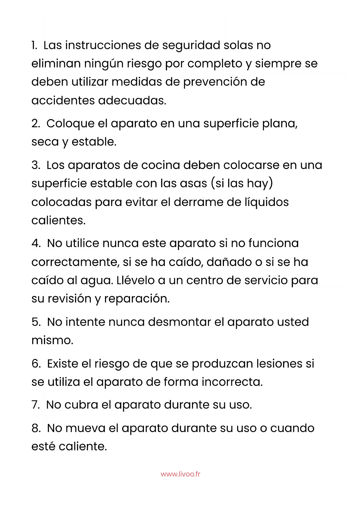 fuentes de calor (placas calientes, cercanía de gases calientes o en el interior de hornos calientes, etc.).www.livoo.fr