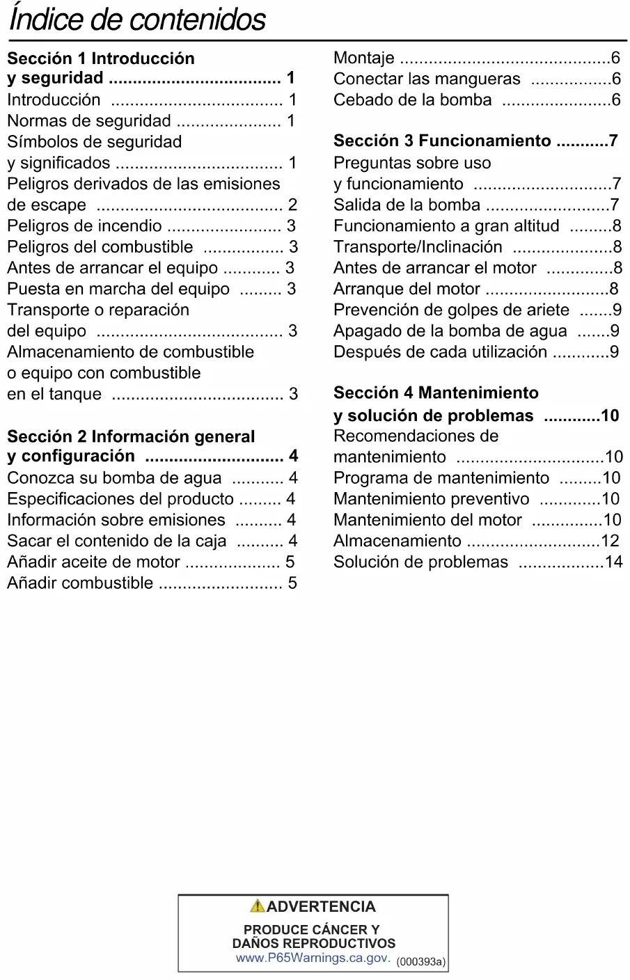 - Conozca su bomba de agua p. 4