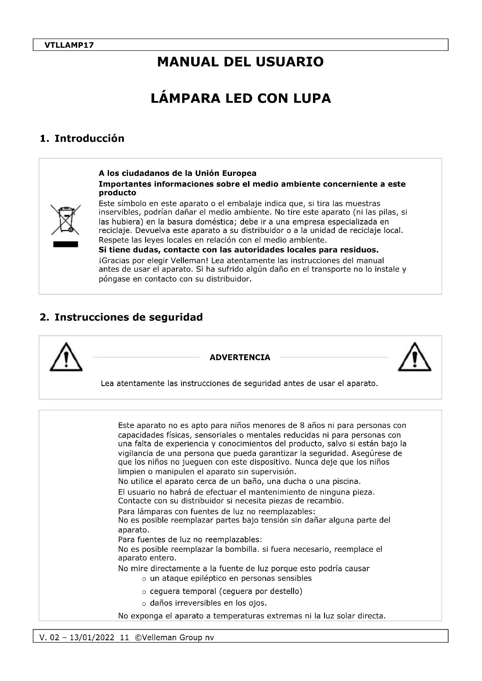 Encuentra gratis el manual del aparato VTLLAMP17 VELLEMAN en formato PDF.
