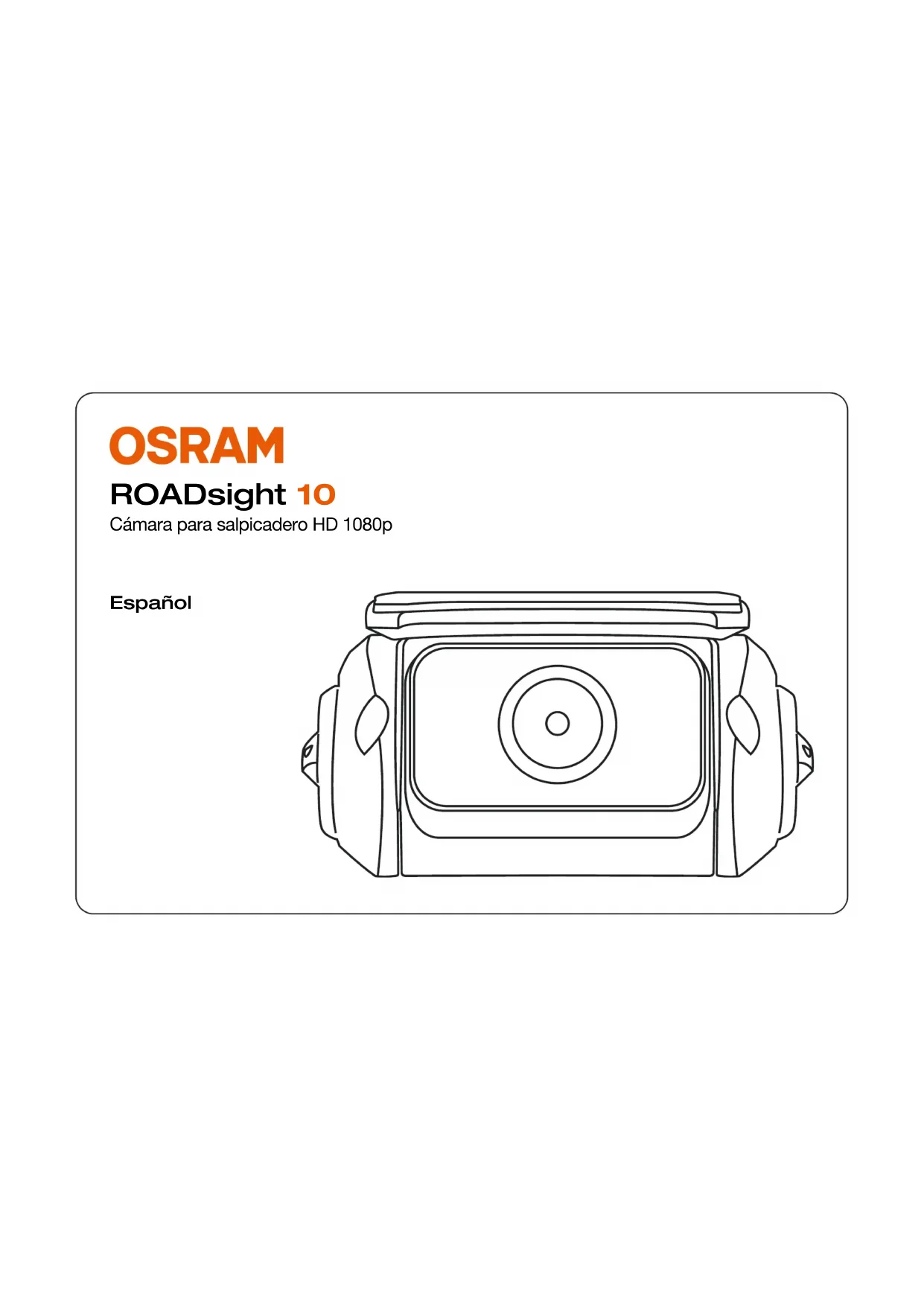 DE SALPICADERO OSRAM ROADsight 50 La cámara trasera OSRAM ROADsight 10 necesita estar emparejada con la cámara de salpicadero OSRAM ROADsight 50 para poder funcionar. Compatible solo con la cámara de salpicadero OSRAM ROADsight 50. GUÍA DE INSTALACIÓNCOLOCACIÓN DE LA CÁMARA TRASERA Para garantizar un ángulo de visión adecuado de la carretera detrás de su vehículo, coloque la cámara trasera hacia la parte superior de la ventana trasera. La cámara trasera debe ofrecer una visión despejada de la carretera.¡ATENCIÓN! Elija el lugar de instalación con antelación, ya que la cinta adhe- siva de la montura es de un solo uso. 1 Asegúrese de que el cristal no tenga suciedad, polvo y grasa. 2 Caliente la parte de la almohadilla adhesiva con las manos para asegurar una sólida adhesión al cristal. INSTALACIÓN DE LA CÁMARA TRASERAOSRAM ROADsight 50 Para encender el dispositivo, conecte el cable de alimentación al soporte de la cámara de salpicadero OSRAM ROADsight 50. Cuando el motor del vehículo se pone en marcha, el dispositivo se enciende automáticamente.AJUSTE DEL ÁNGULO DE VISIÓN ¡ATENCIÓN! El ajuste del ángulo de visión solo puede hacerse a lo largo del eje vertical, por lo que debe asegurarse de colocar el dispositivo correctamente en el parabrisas a lo largo del eje horizontal, lo más cerca posible del centro del parabrisas. Mientras ajusta el dispositivo en el soporte, asegúrese de que la cámara capta la imagen en las siguientes proporciones: 30% de cielo y 70% de carretera. Bien MalCONEXIÓN CON EL MÓVIL