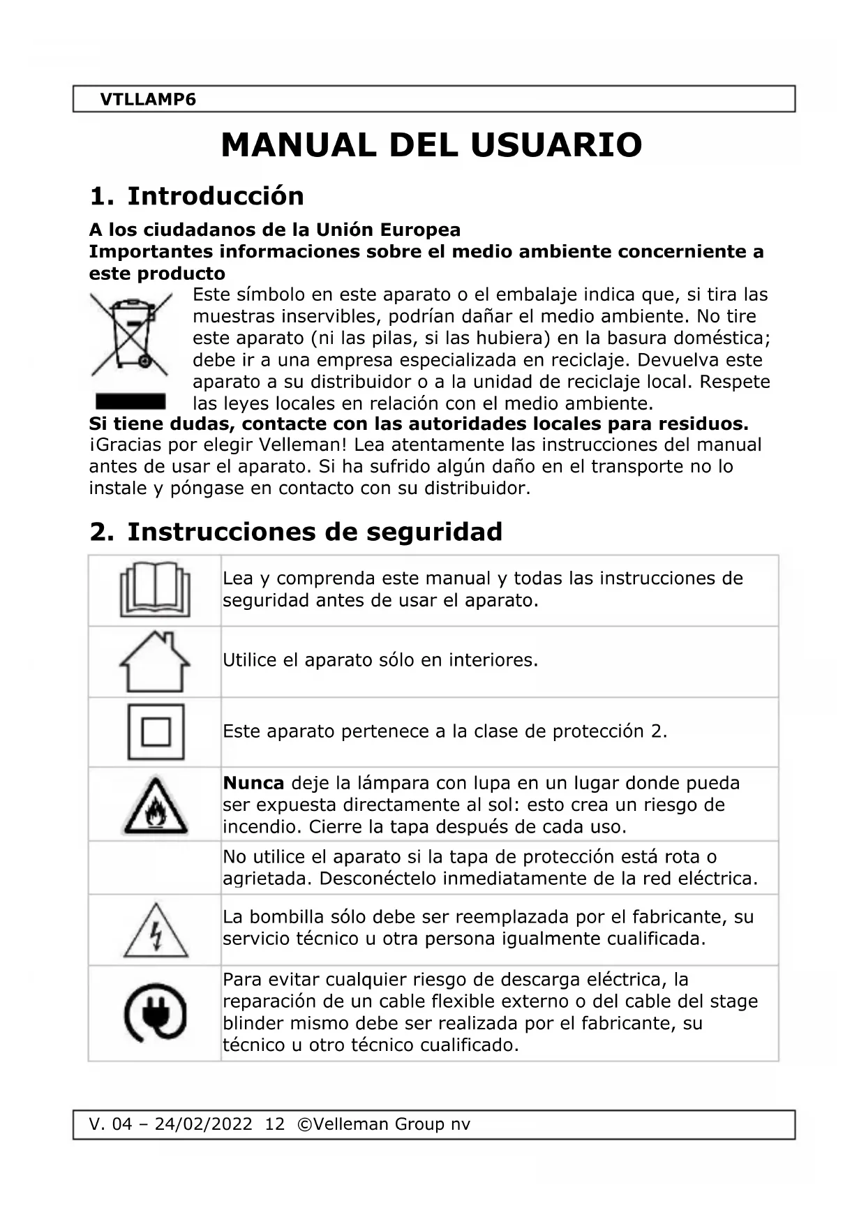 MANUAL DE USUARIO VTLLAMP6 VELLEMAN