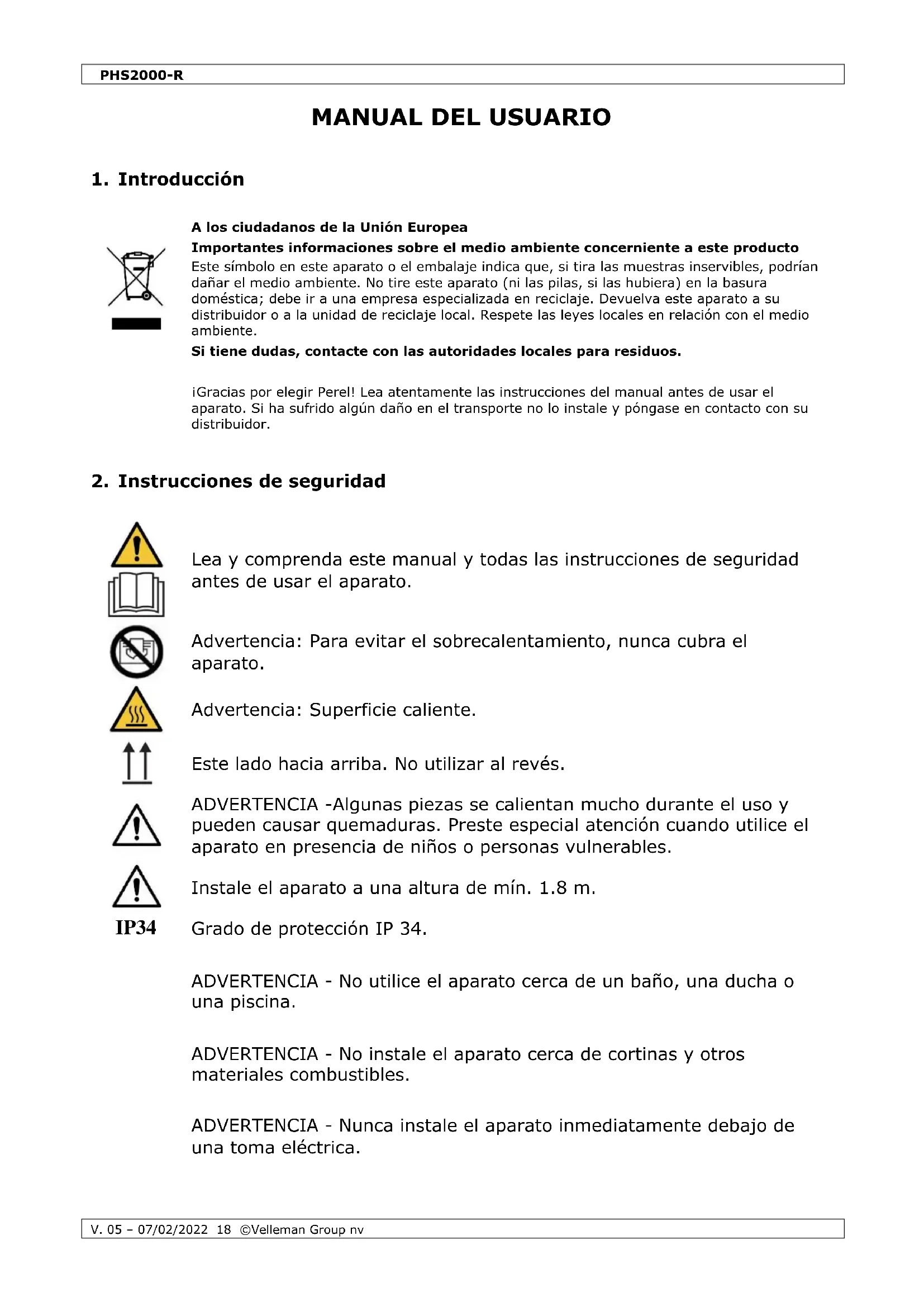 MANUAL DE USUARIO PHS2000R Perel