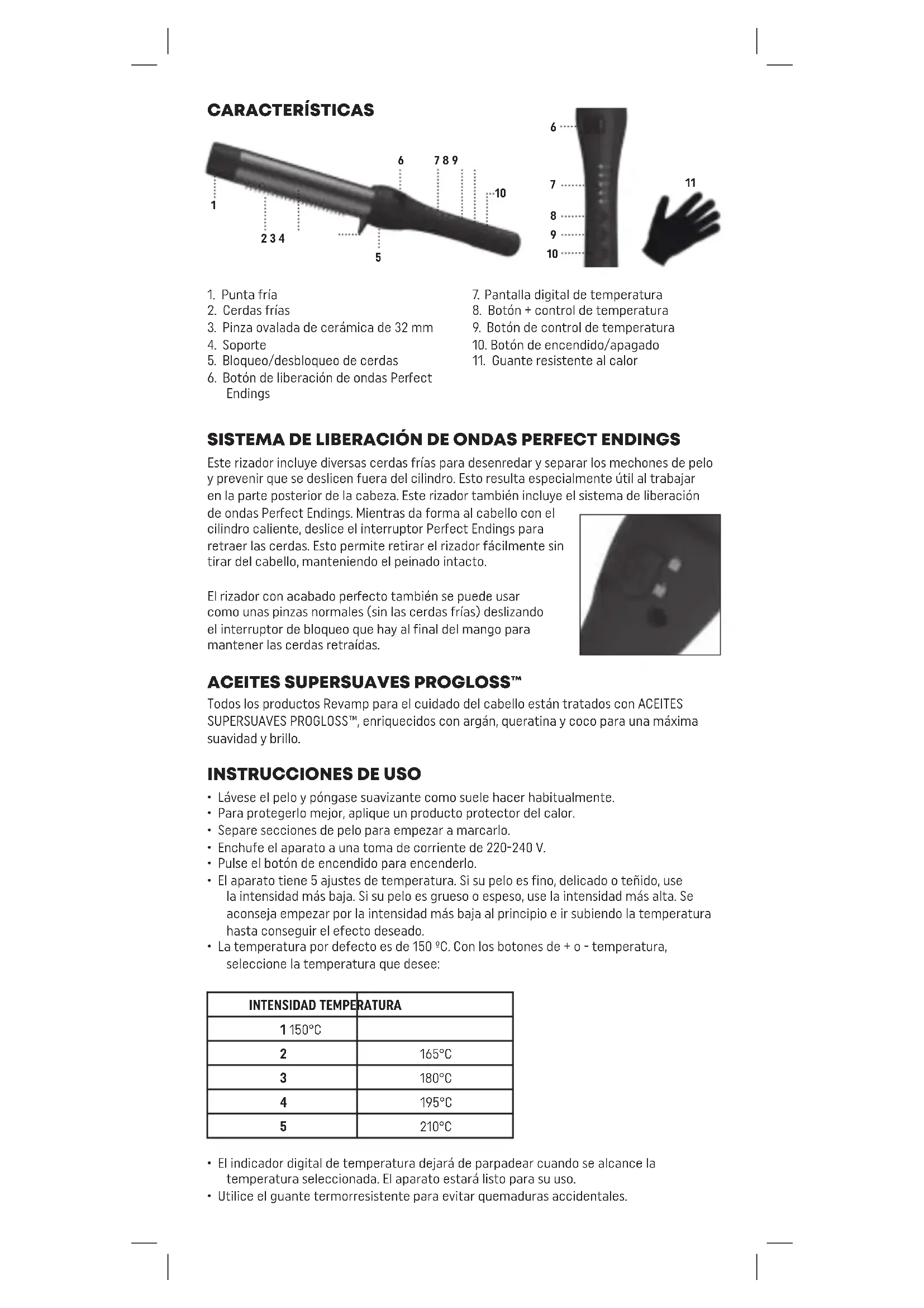 Encuentra gratis el manual del aparato Progloss Perfect Finish Waver TO1500 Revamp en formato PDF.