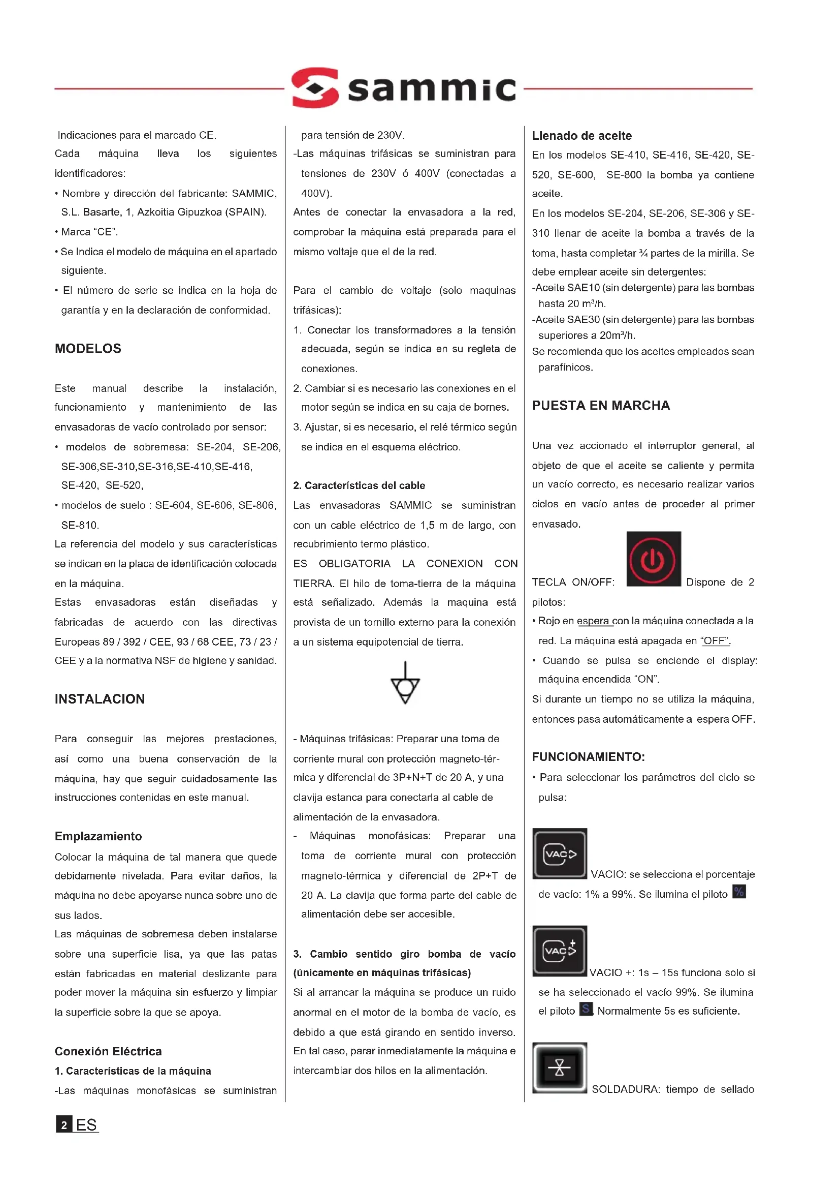 SE420 - Máquinas de envasado al vacío Sammic - Manual de uso y guía de instrucciones gratis