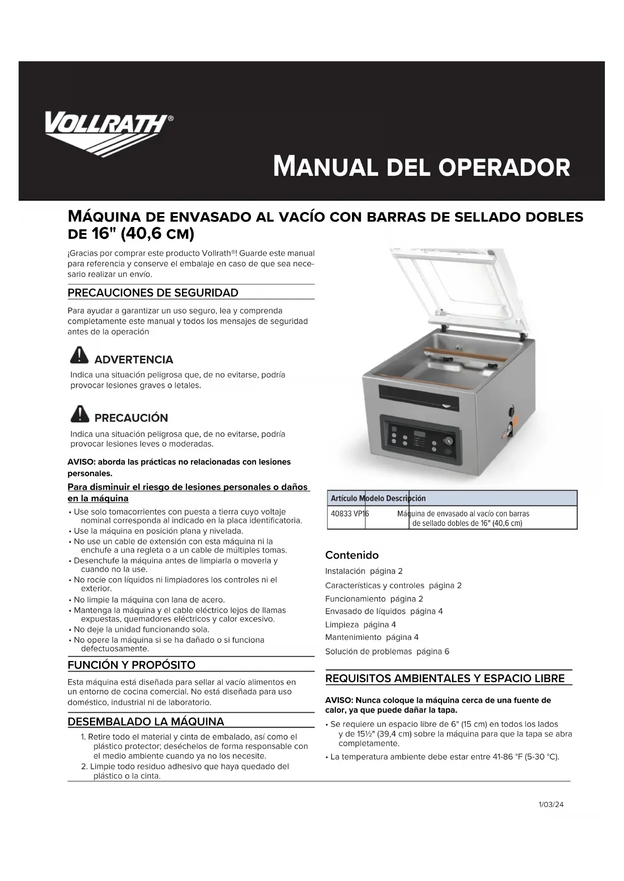 MANUAL DE USUARIO VP16 Vollrath