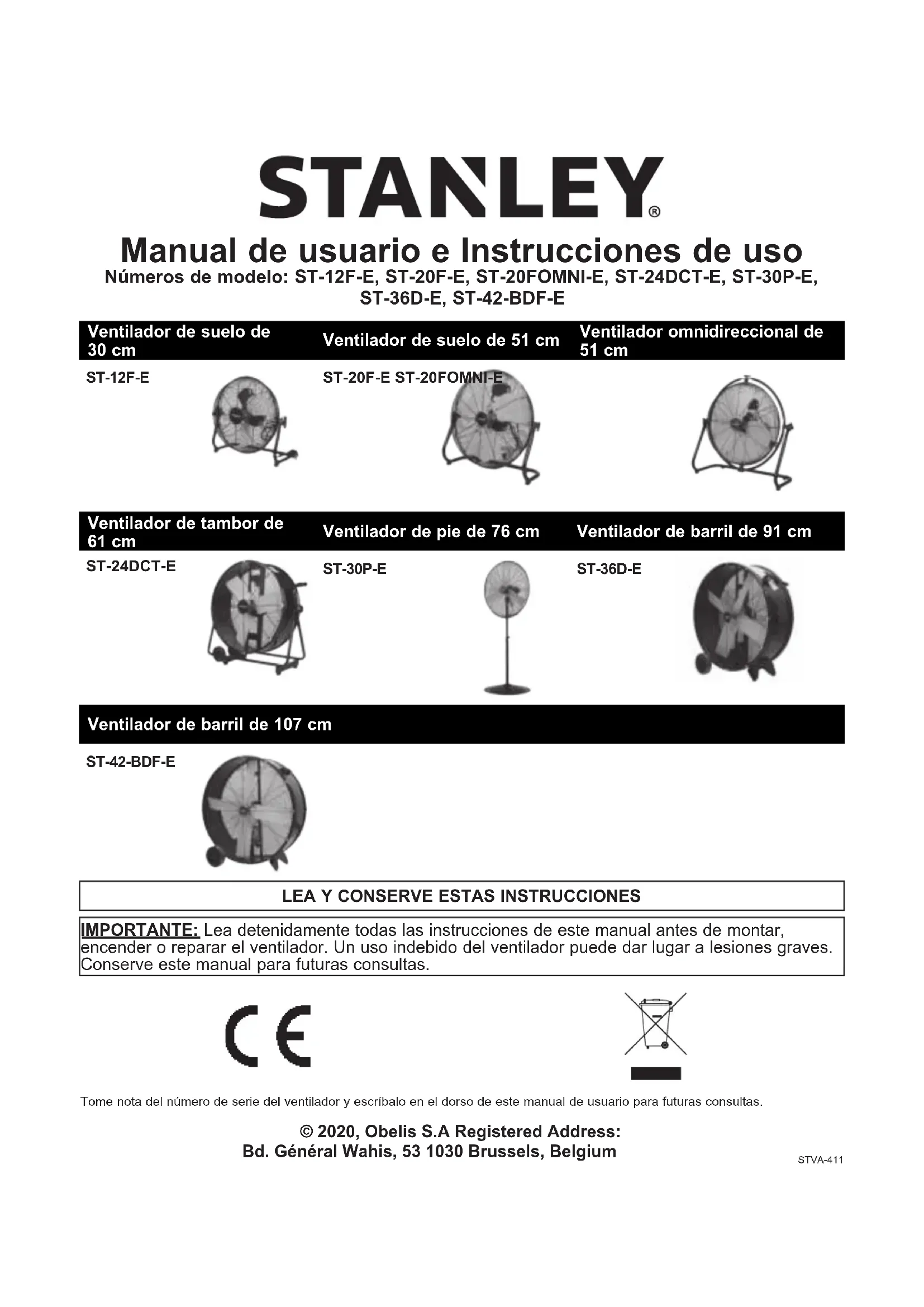 REP© 2020, Obelis S.A Registered Address: Bd. Général Wahis, 53 1030 Brussels, Belgium Tome nota del número de serie del ventilador y escríbalo en el dorso de este manual de usuario para futuras consultas. STVA-411