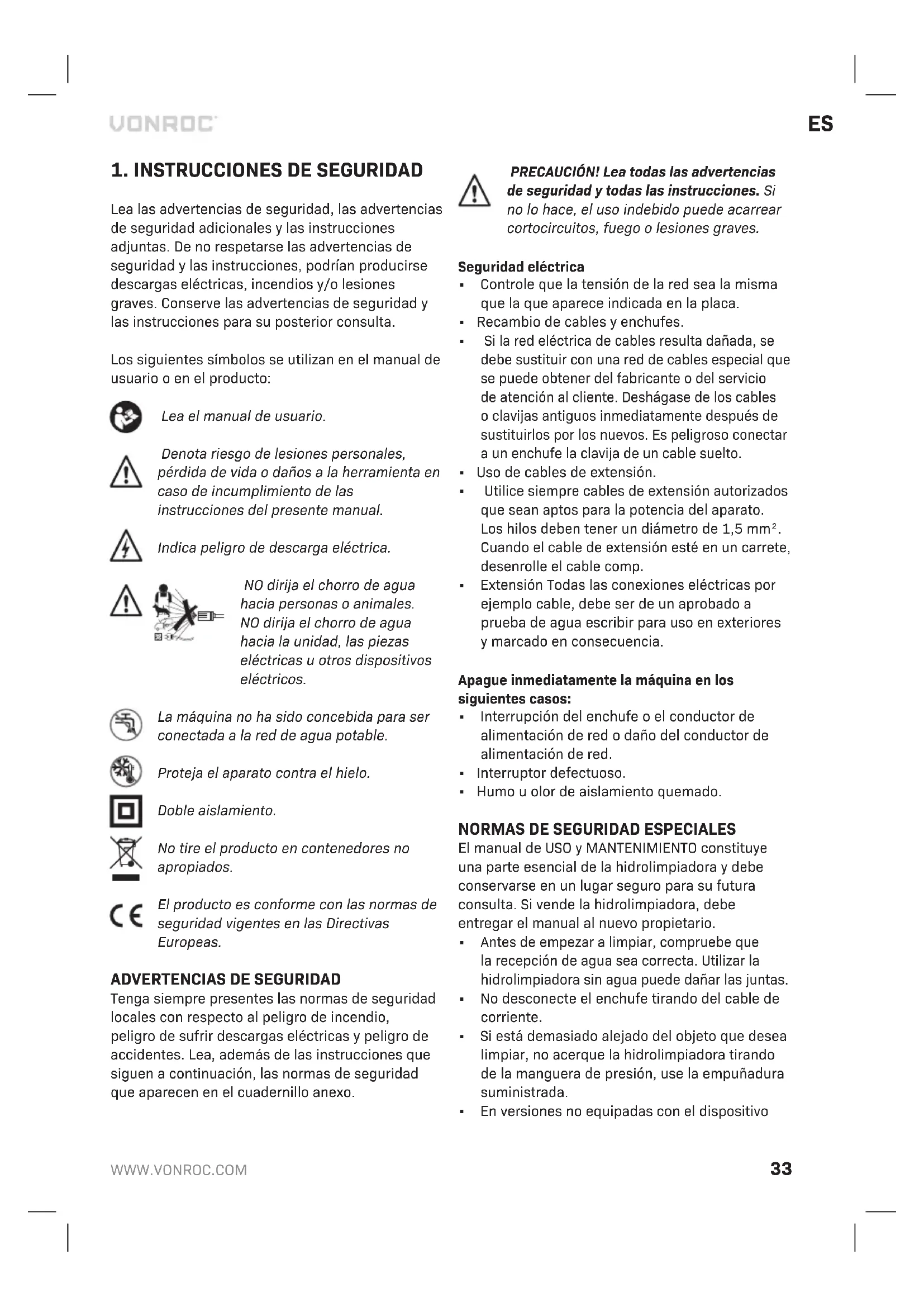 PW506AC - Limpiador de alta presion Vonroc - Manual de uso y guía de instrucciones gratis