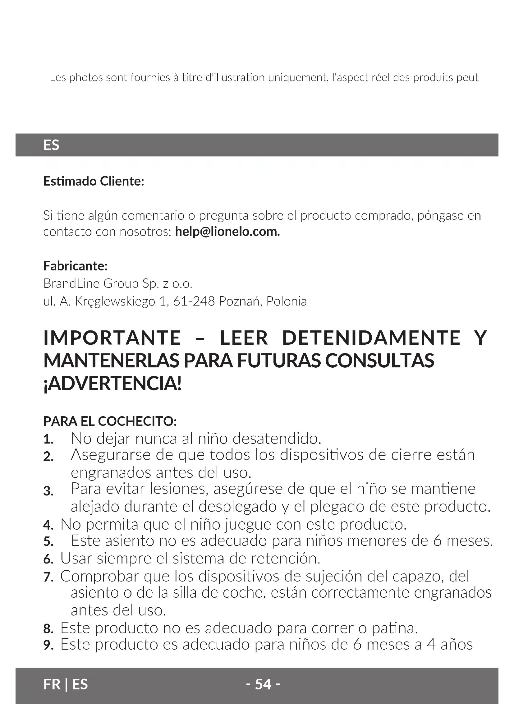Esmado Cliente: Si ene algún comentario o pregunta sobre el producto comprado, póngase en contacto con nosotros: help@lionelo.com. Fabricante: BrandLine Group Sp. z o.o. ul. A. Kręglewskiego 1, 61-248 Poznań, Polonia