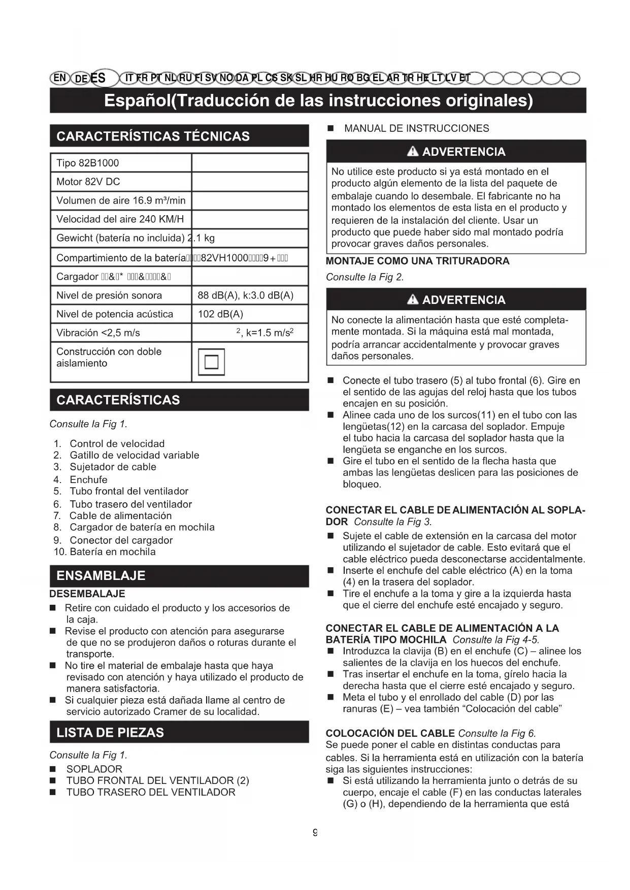 MANUAL DE USUARIO 82B1000 Cramer
