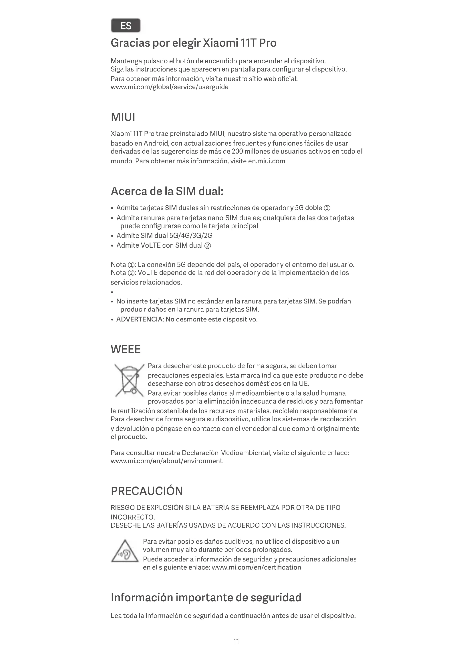 MANUAL DE USUARIO Mi 11T Pro Xiaomi