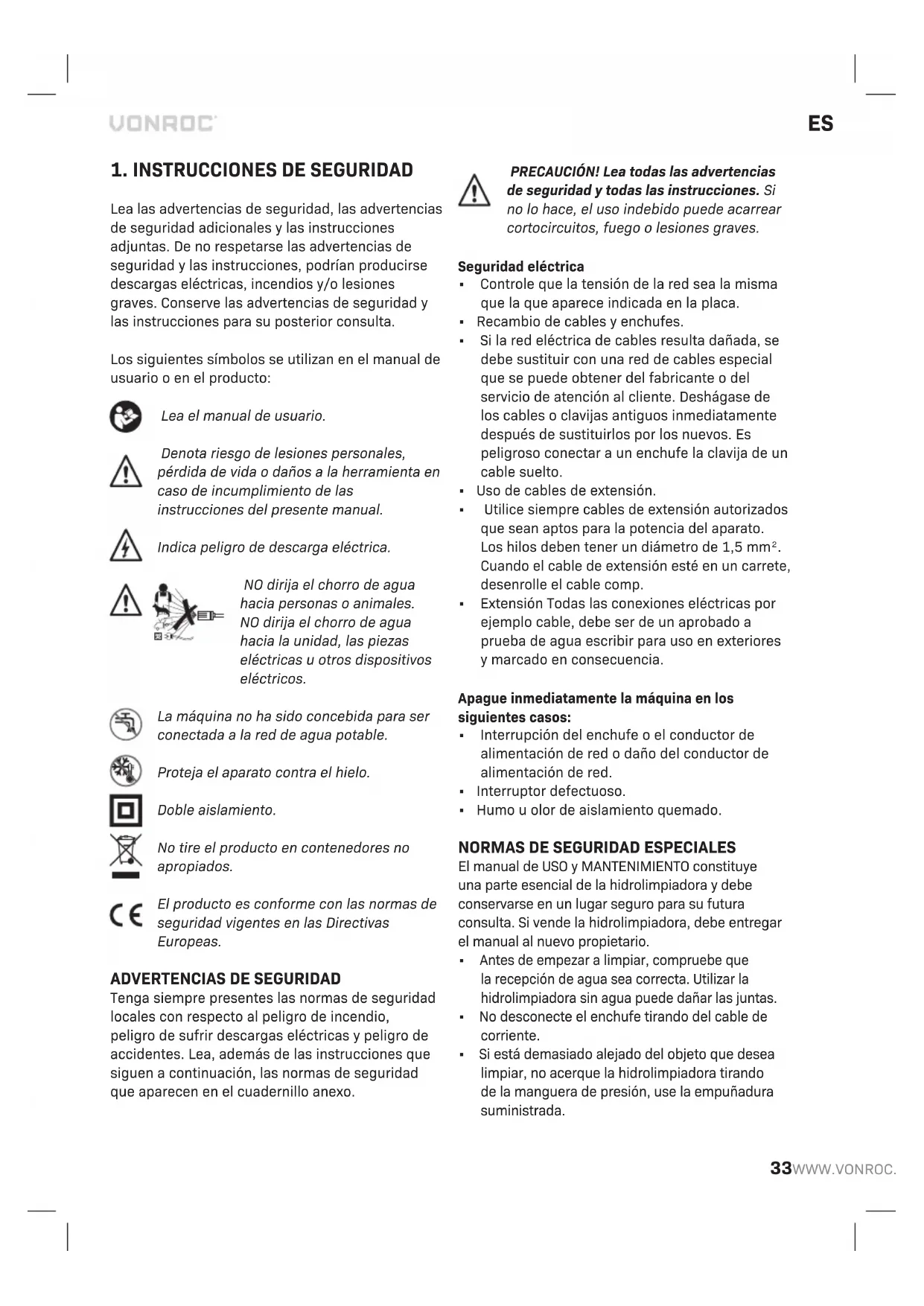 PW504AC - Hidrolimpiadora Vonroc - Manual de uso y guía de instrucciones gratis
