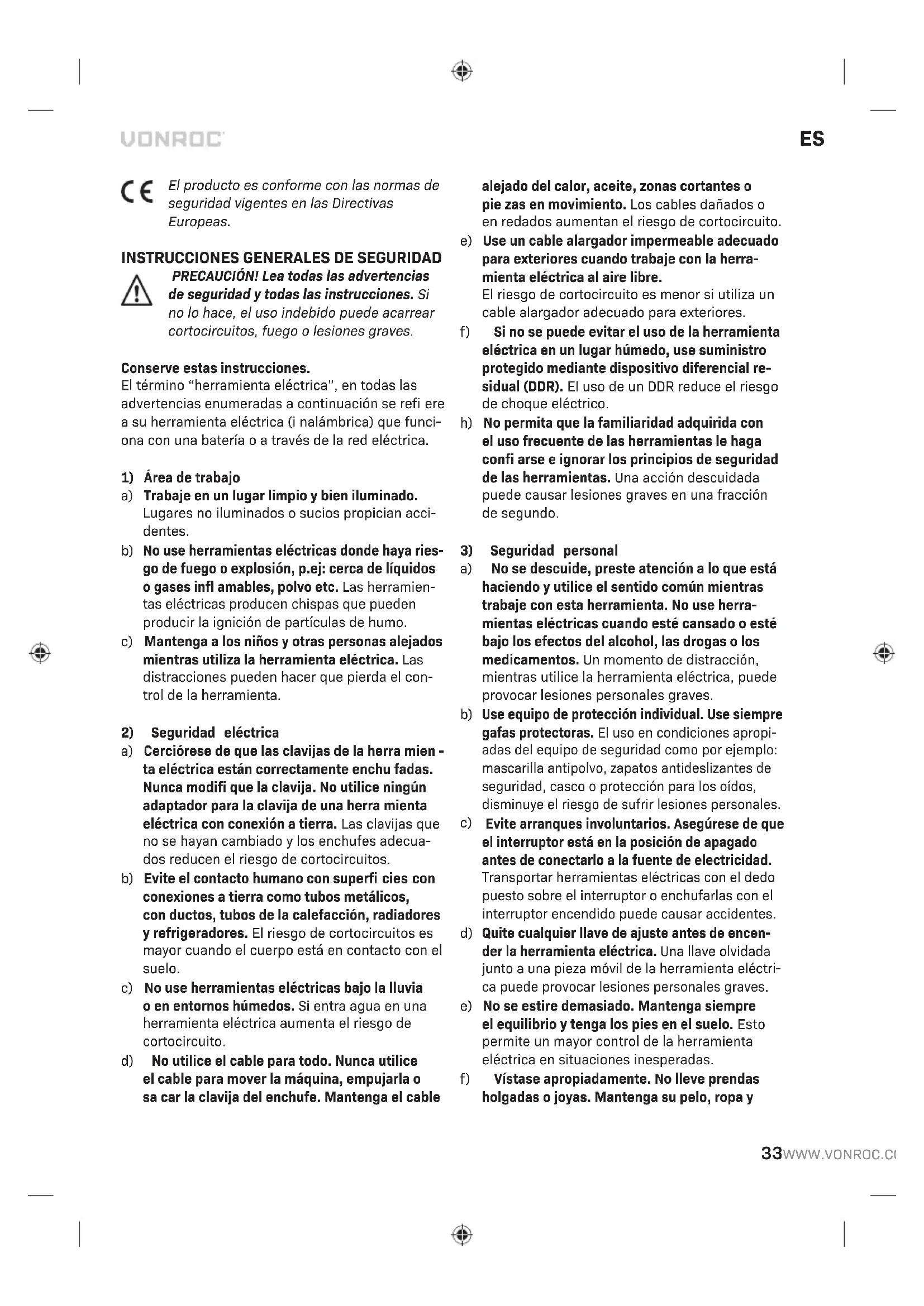 Los productos VONROC han sido desarrollados con los más altos estándares de calidad y VONROC garantiza que están exentos de defectos relacio- nados con los materiales y la fabricación durante el periodo legalmente estipulado, a contar desde la fecha de compra original. En caso de que el producto presente defectos relacionados con los materiales y/o la fabricación durante este periodo, póngase directamente en contacto VONROC. La presente garantía se excluye en los siguientes casos:
