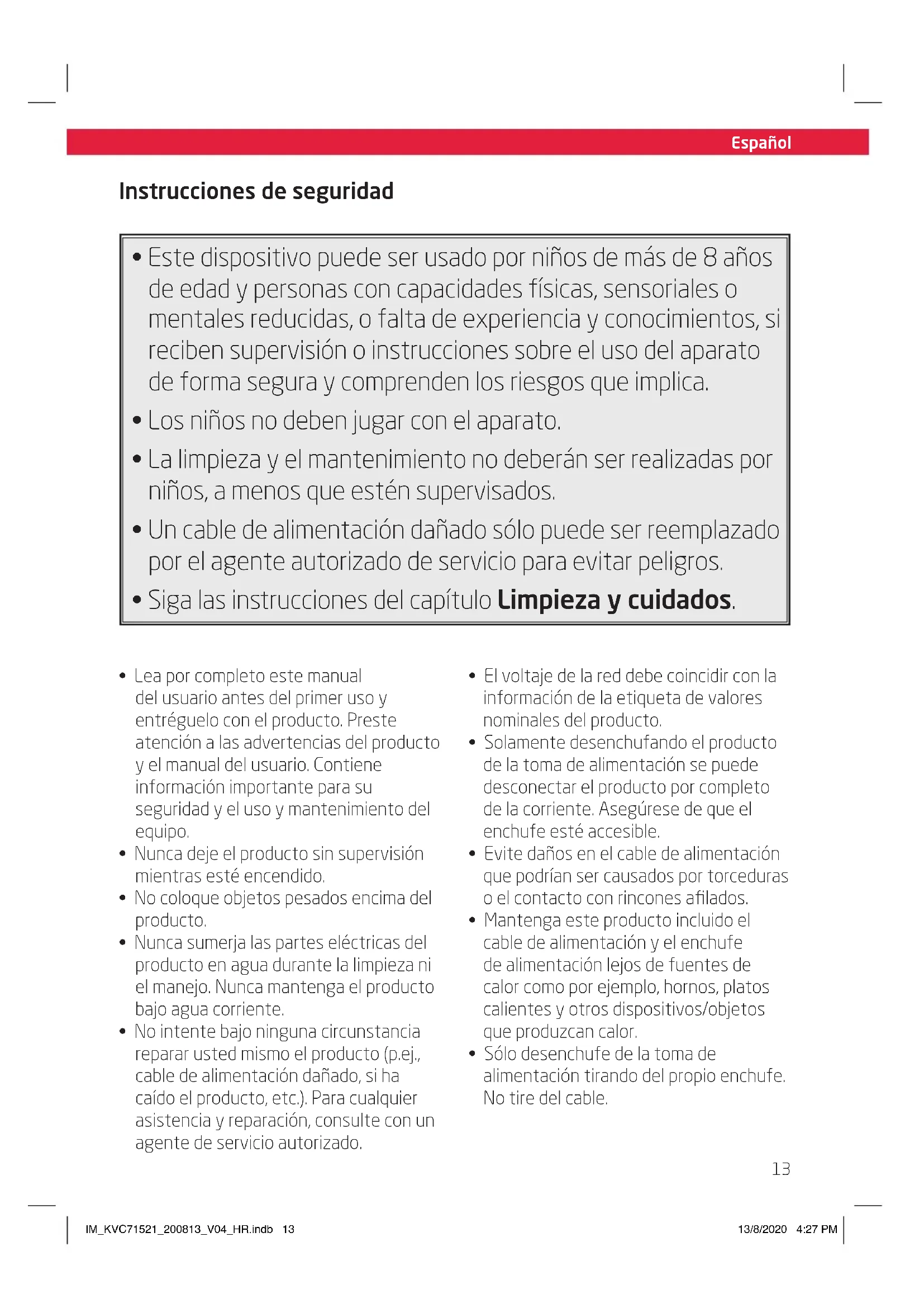 - Por favor, consulte el sitio web de abajo para obtener información técnica detallada o contacte con el fabricante para que le proporcione el documento técnico: www.koenic-online.com IM_KVC71521_200813_V04_HR.indb 15IM_KVC71521_200813_V04_HR.indb 15 13/8/2020 4:27 PM13/8/2020 4:27 PMSize - A5