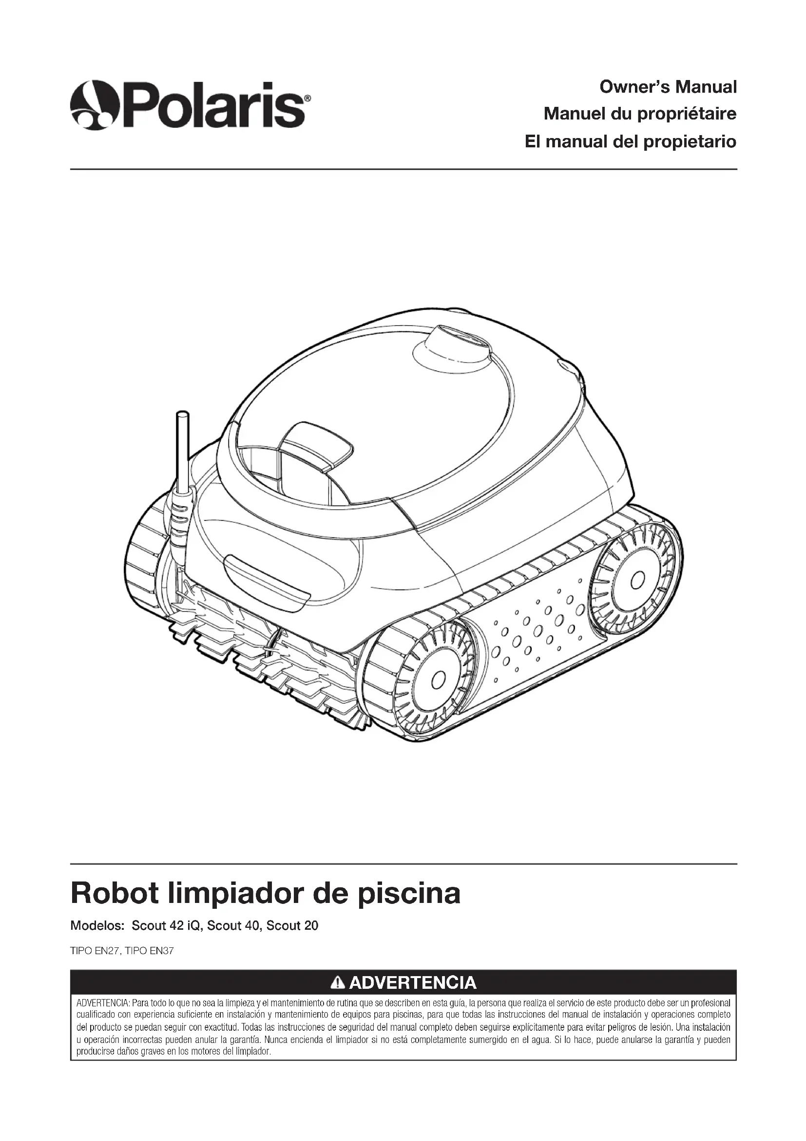 Descarga las instrucciones para tu Piscina en formato PDF gratis! Encuentra tus instrucciones Scout 40 - POLARIS y toma tu dispositivo electrónico nuevamente en la mano. En esta página están publicados todos los documentos necesarios para el uso de su dispositivo. Scout 40 de la marca POLARIS.