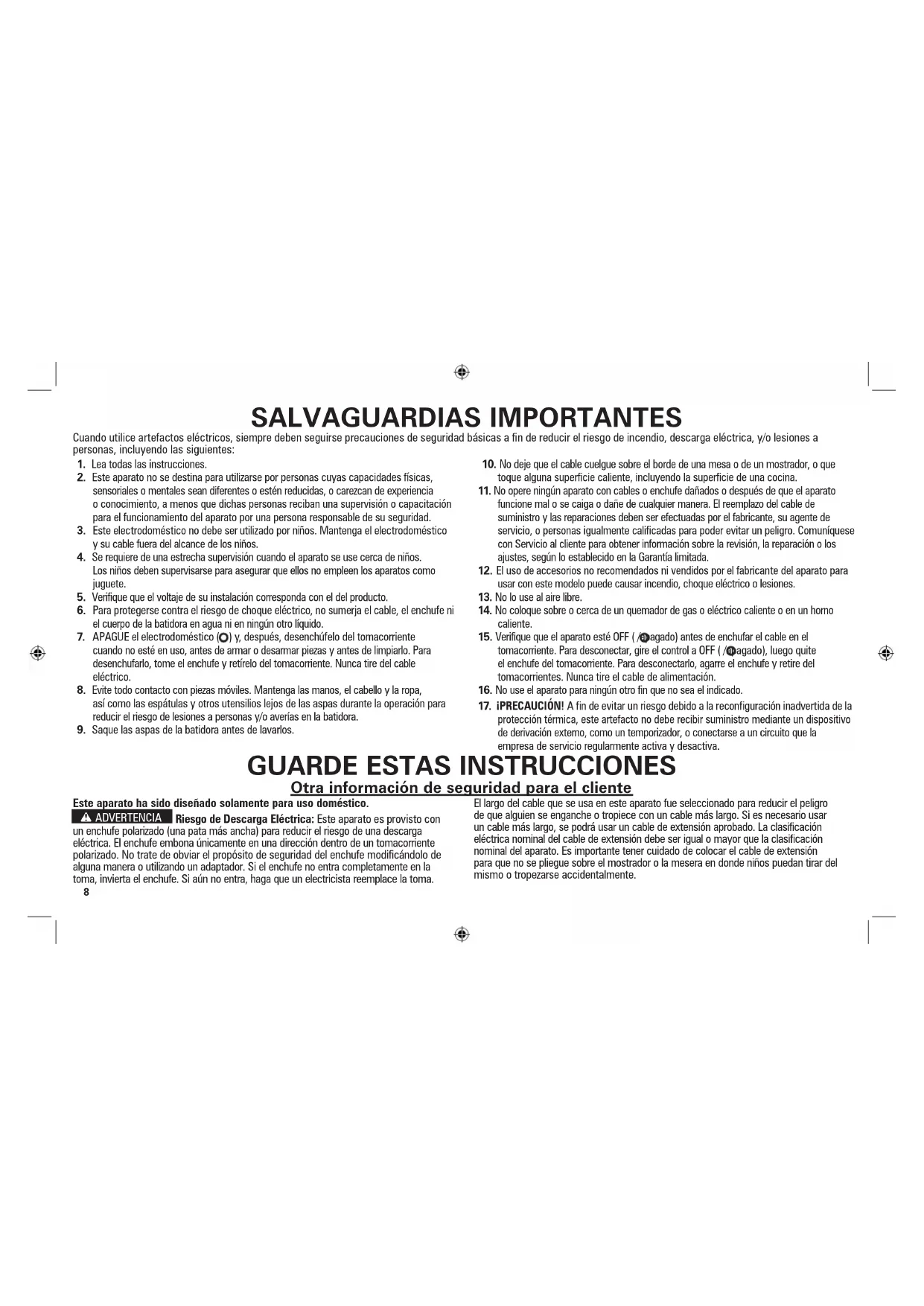 GUARDE ESTAS INSTRUCCIONES