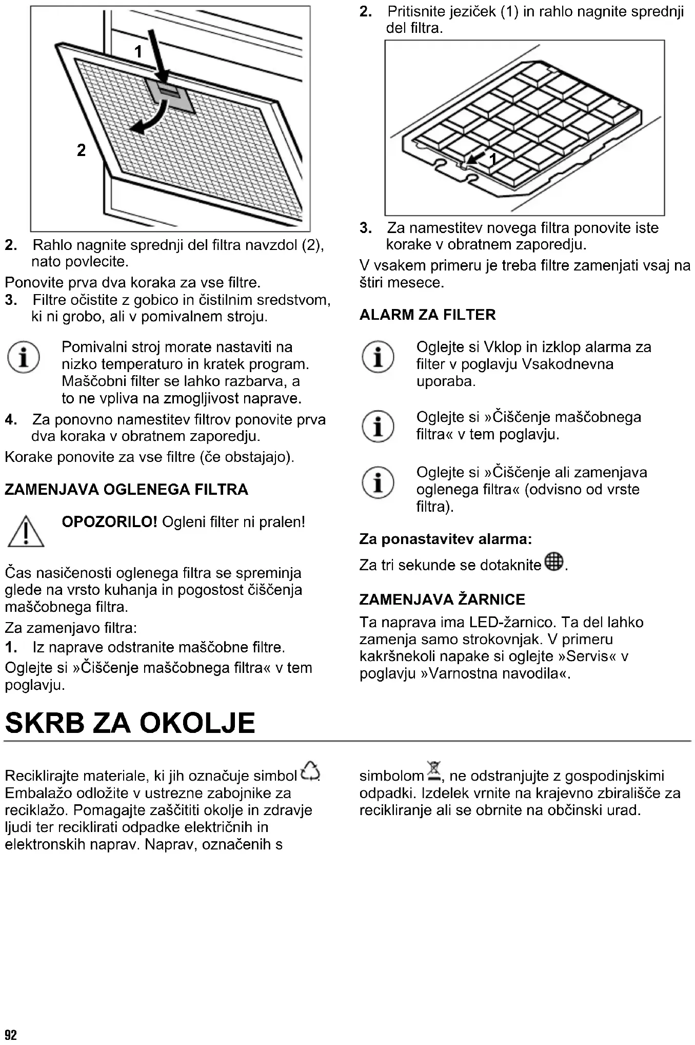 ADVERTENCIA! El filtro de carbón NO es lavable! El tiempo de saturación del filtro de carbón varía en función del tipo de cocción y de la regularidad de la limpieza del filtro de grasa. Para reemplazar el filtro: