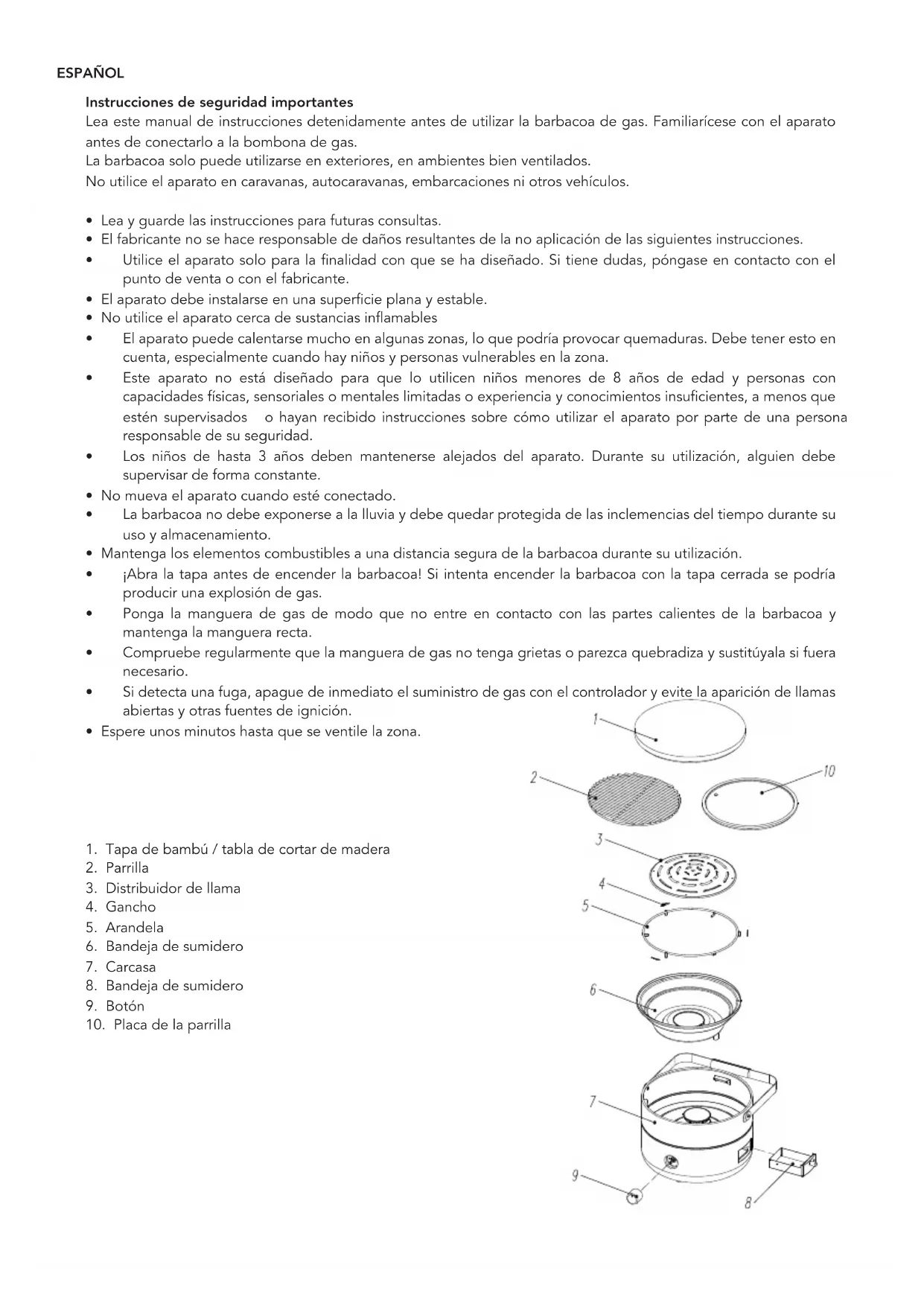 - Mantenga los elementos combustibles a una distancia segura de la barbacoa durante su utilización.