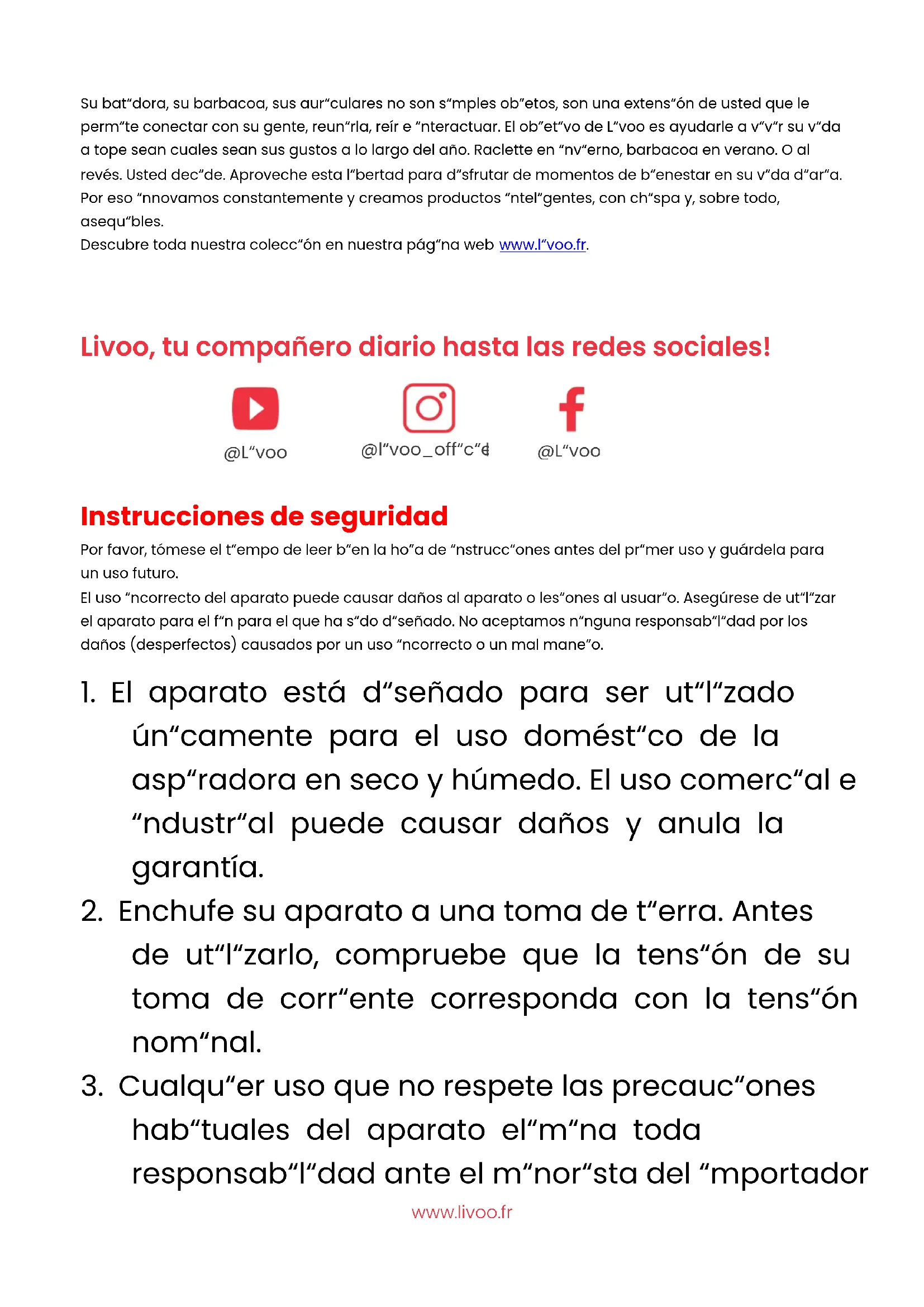 habituales del aparato elimina toda responsabilidad ante el minorista del importador @livoo_officiel