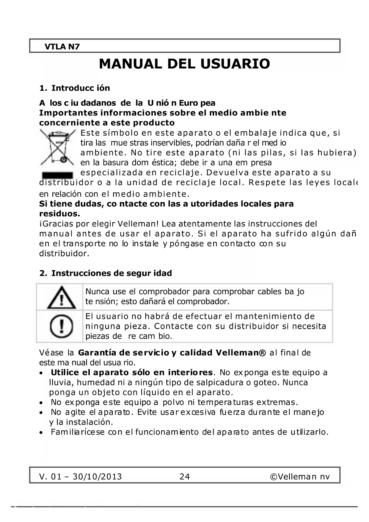 VTLAN7 - Equipos de medición VELLEMAN - Manual de uso y guía de instrucciones gratis