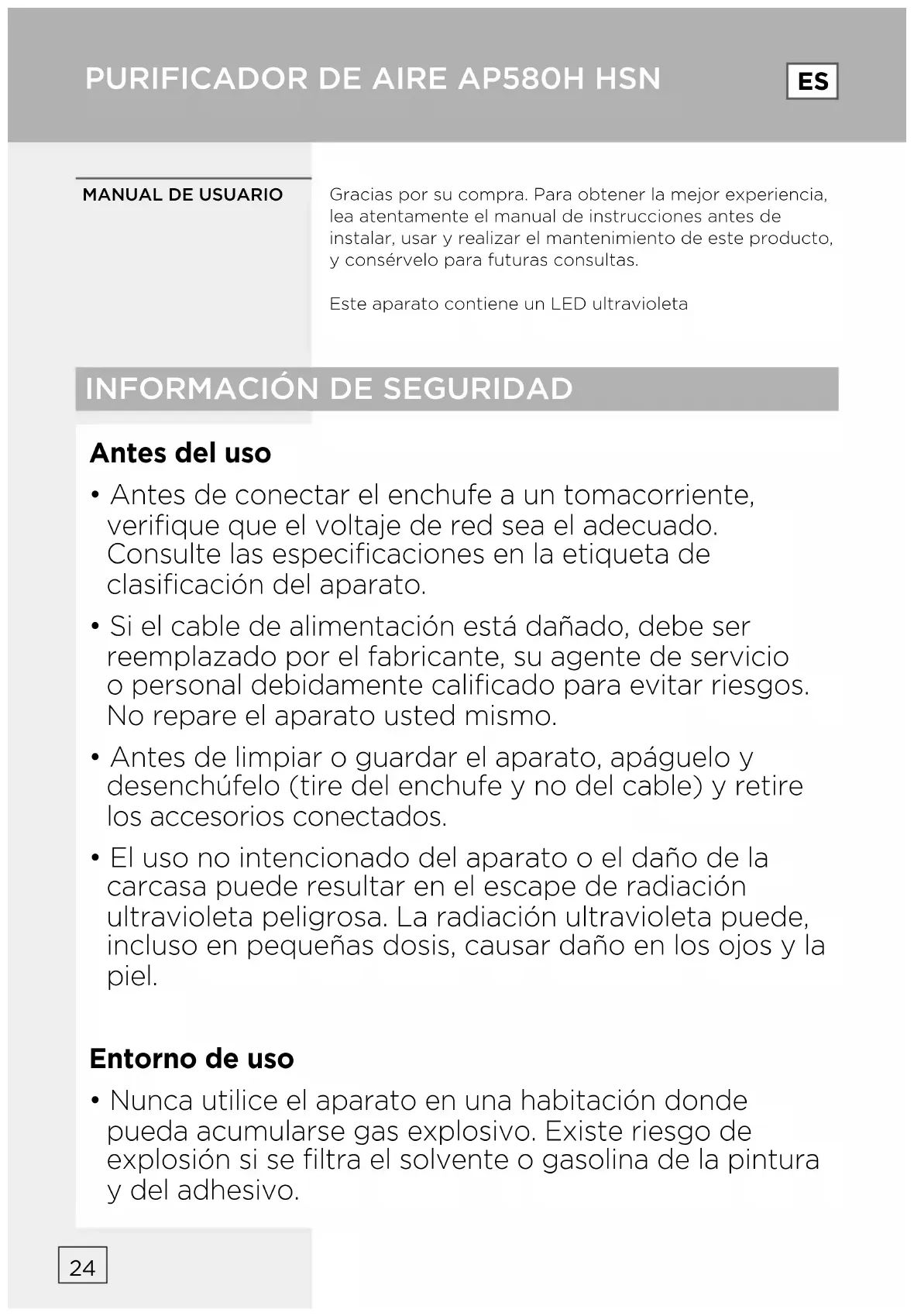 AP580H - Purificador de aire HISENSE - Manual de uso y guía de instrucciones gratis