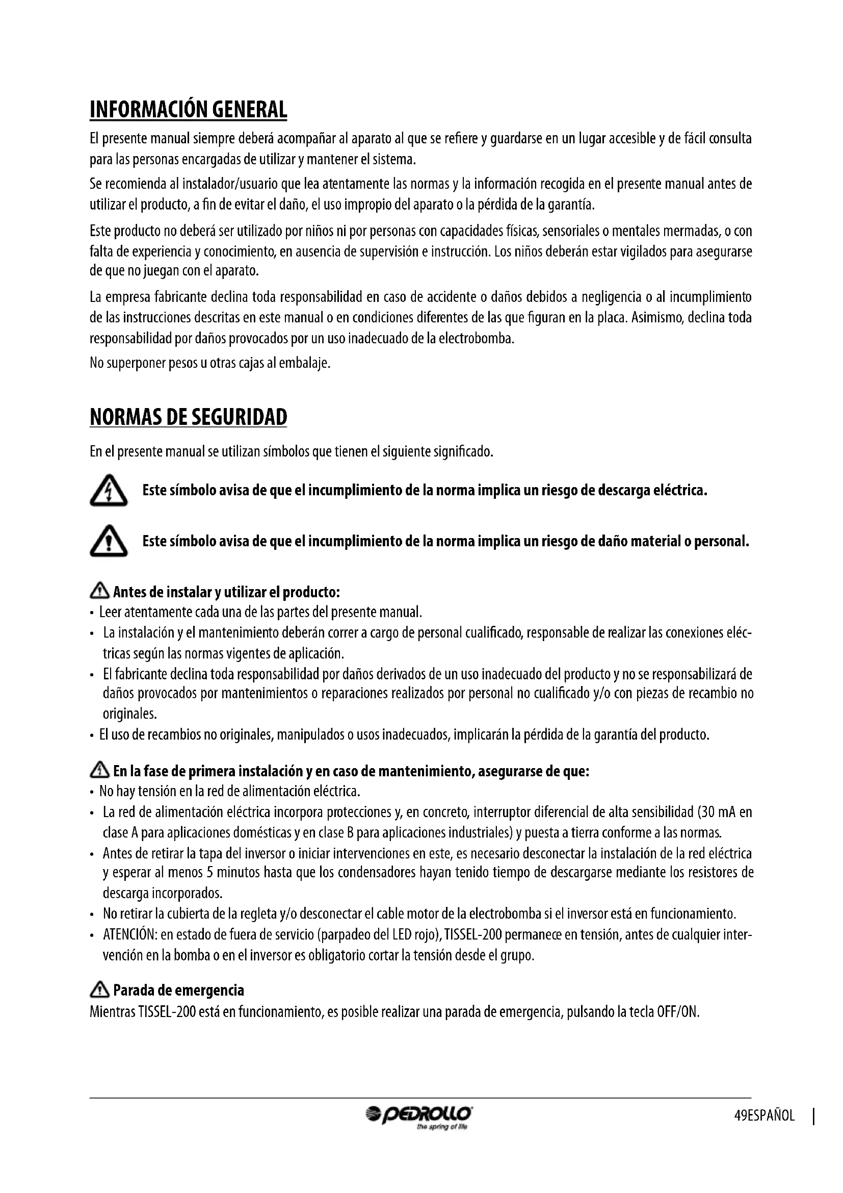 MANUAL DE USUARIO TISSEL200 Pedrollo