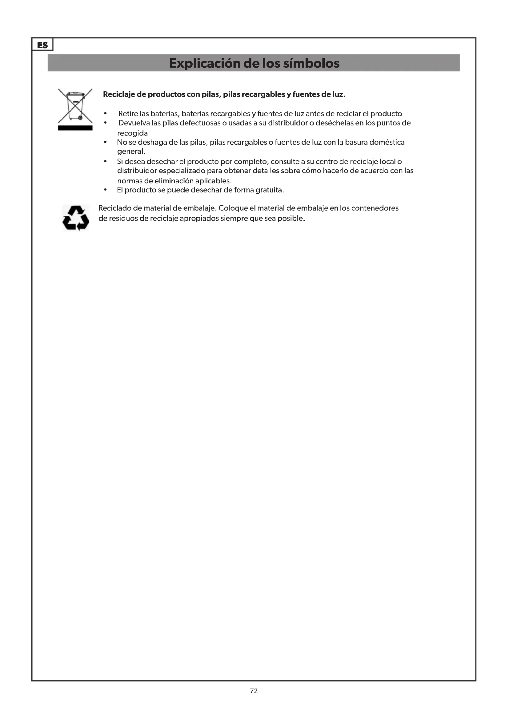 - No se deshaga de las pilas, pilas recargables o fuentes de luz con la basura doméstica general.
