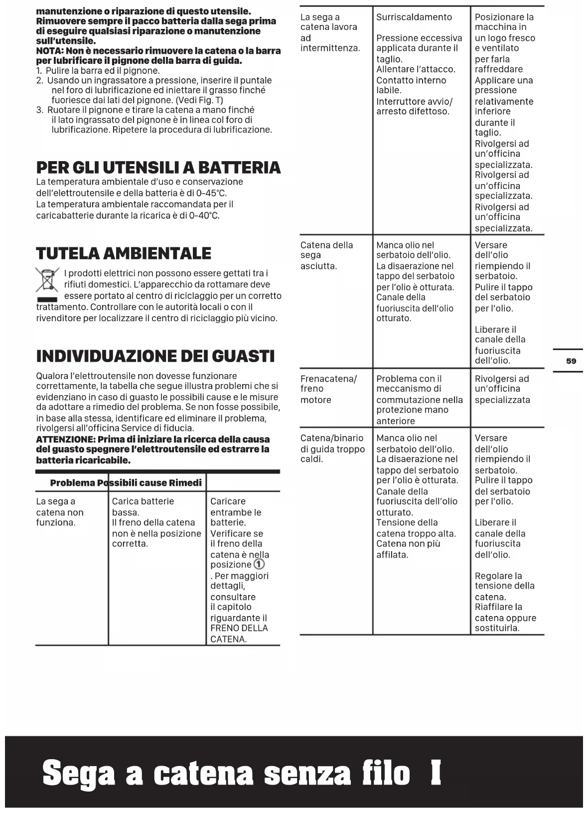 - Mantenga la cadena afilada, limpia y lubricada para72 Motosierra inalámbrica ES asegurar un funcionamiento óptimo y seguro.