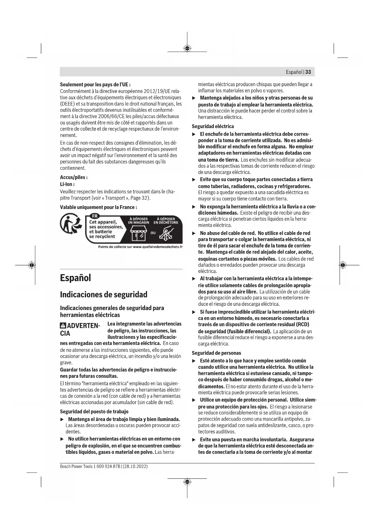 (suma de vectores de tres direcciones) e inseguridad K determinados segúnEN62841‑2‑11: 1 609 92A 87B | (28.10.2022) Bosch Power ToolsEspañol | 37