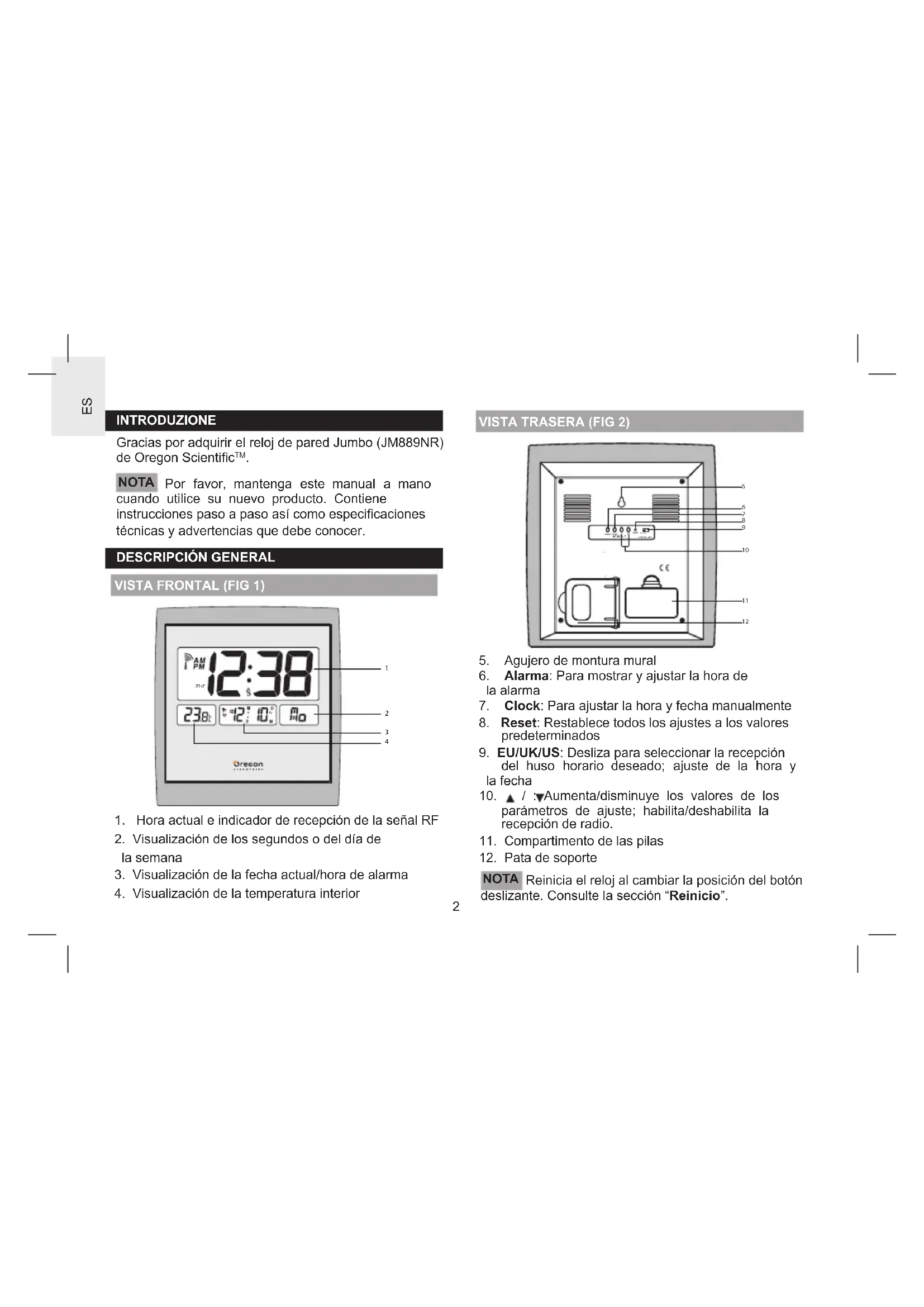 INTRODUZIONE Gracias por adquirir el reloj de pared Jumbo (JM889NR) de Oregon Scientific