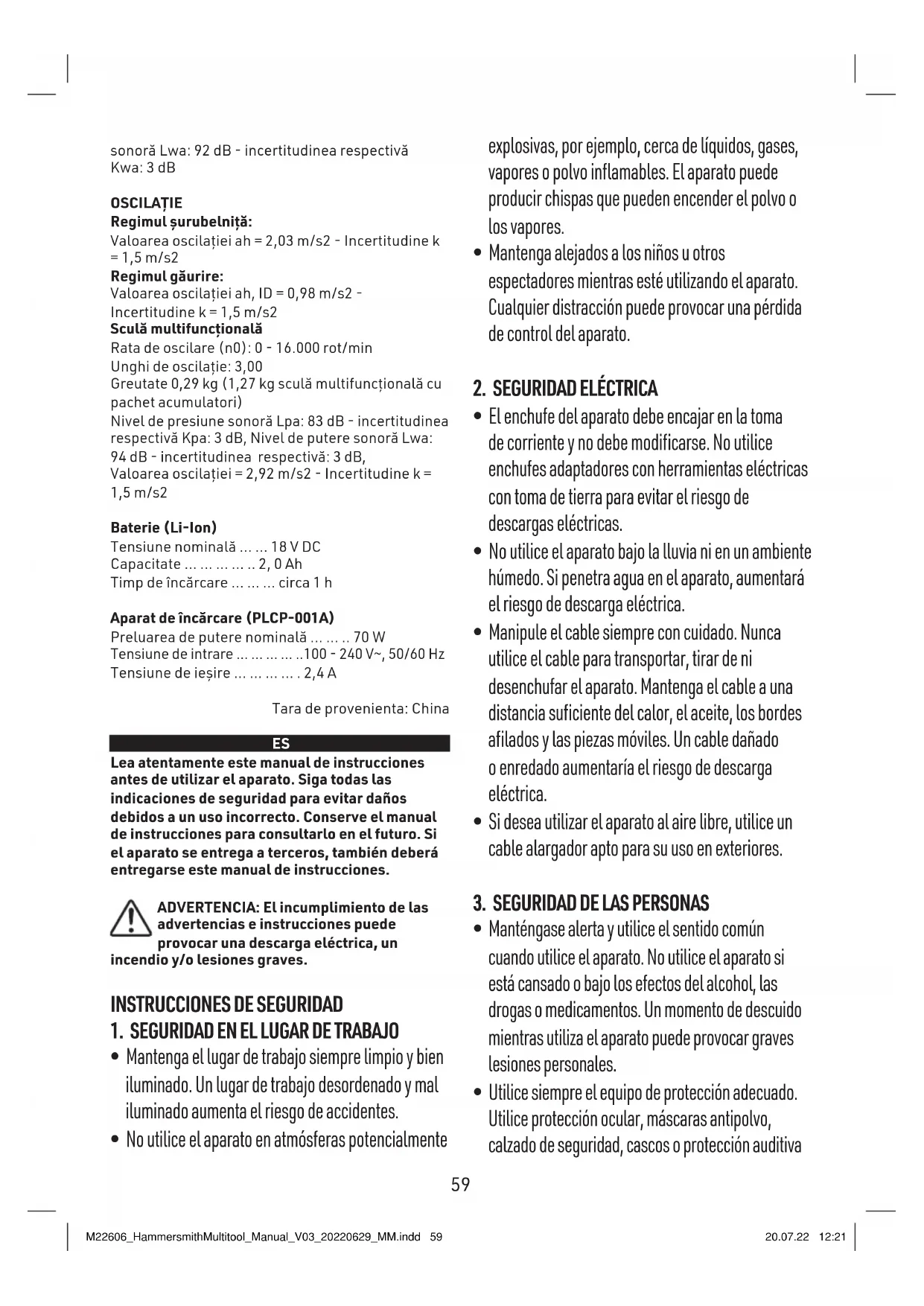 - - 240 V~, 50/60 Hz Tensión de salida ,4 A Fabricado en China M22606_HammersmithMultitool_Manual_V03_20220629_MM.indd 64M22606_HammersmithMultitool_Manual_V03_20220629_MM.indd 64 20.07.22 12:2120.07.22 12:21 p. 2