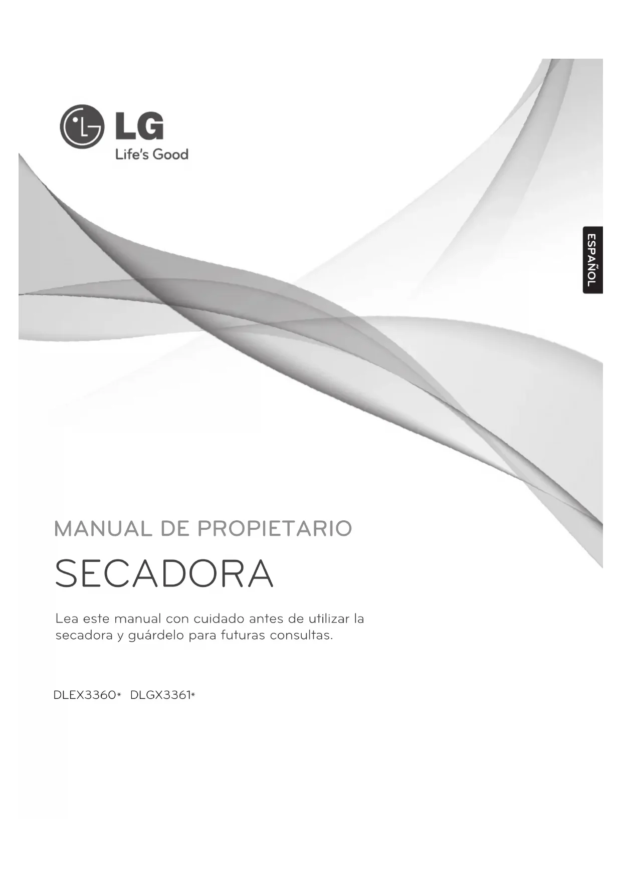 DLGX3361 *Felicitaciones por su compra y bienvenido a la familia LG. Su nueva Secadora LG combina la tecnología de sensor de secado más avanzada con un funcionamiento sencillo y muy eficiente. Al seguir las instrucciones de funcionamiento y mantenimiento de este manual, su secadora le brindará muchos años de servicio fiable. ¡GRACIAS!