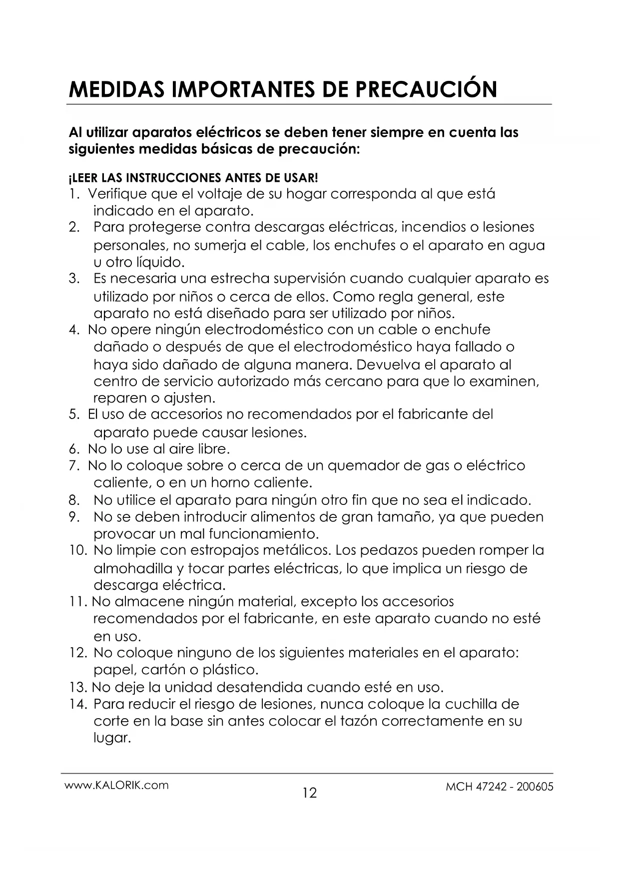 MANUAL DE USUARIO MCH 47242 KALORIK
