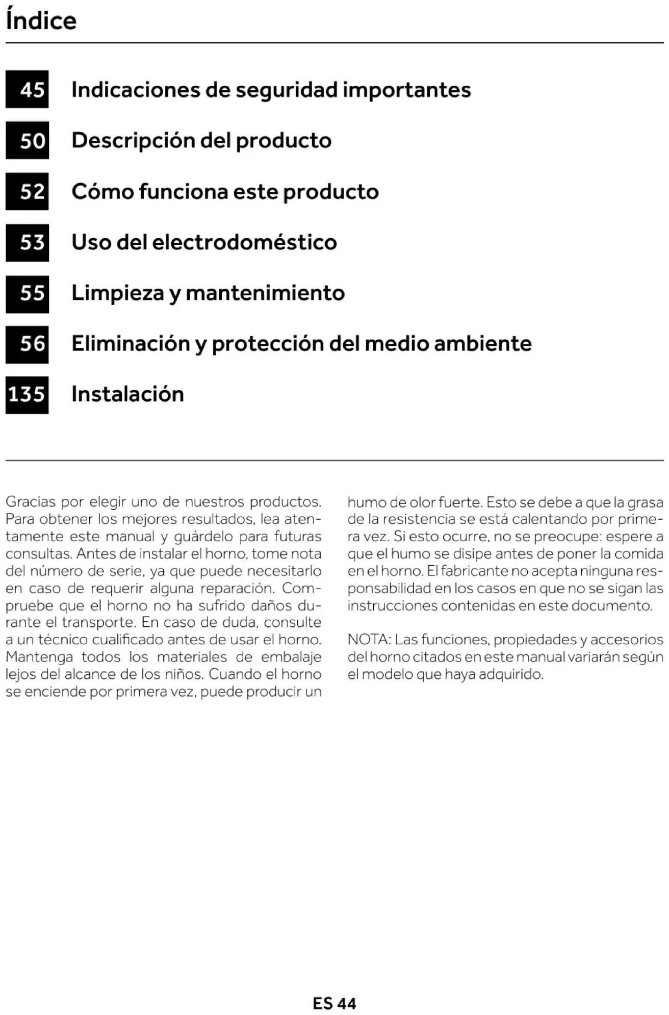 ponsabilidad en los casos en que no se sigan las instrucciones contenidas en este documento. NOTA: Las funciones, propiedades y accesorios del horno citados en este manual variarán según el modelo que haya adquirido. Indicaciones de seguridad importantes Descripción del producto Cómo funciona este producto Uso del electrodoméstico