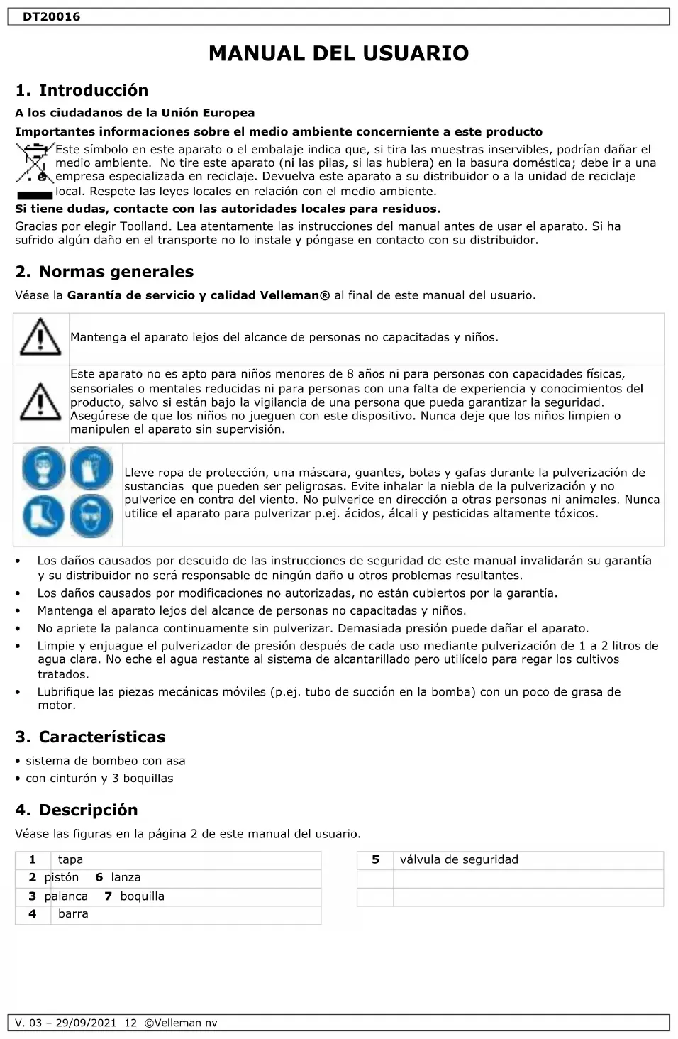 Encuentra gratis el manual del aparato DT20016 Toolland en formato PDF.
