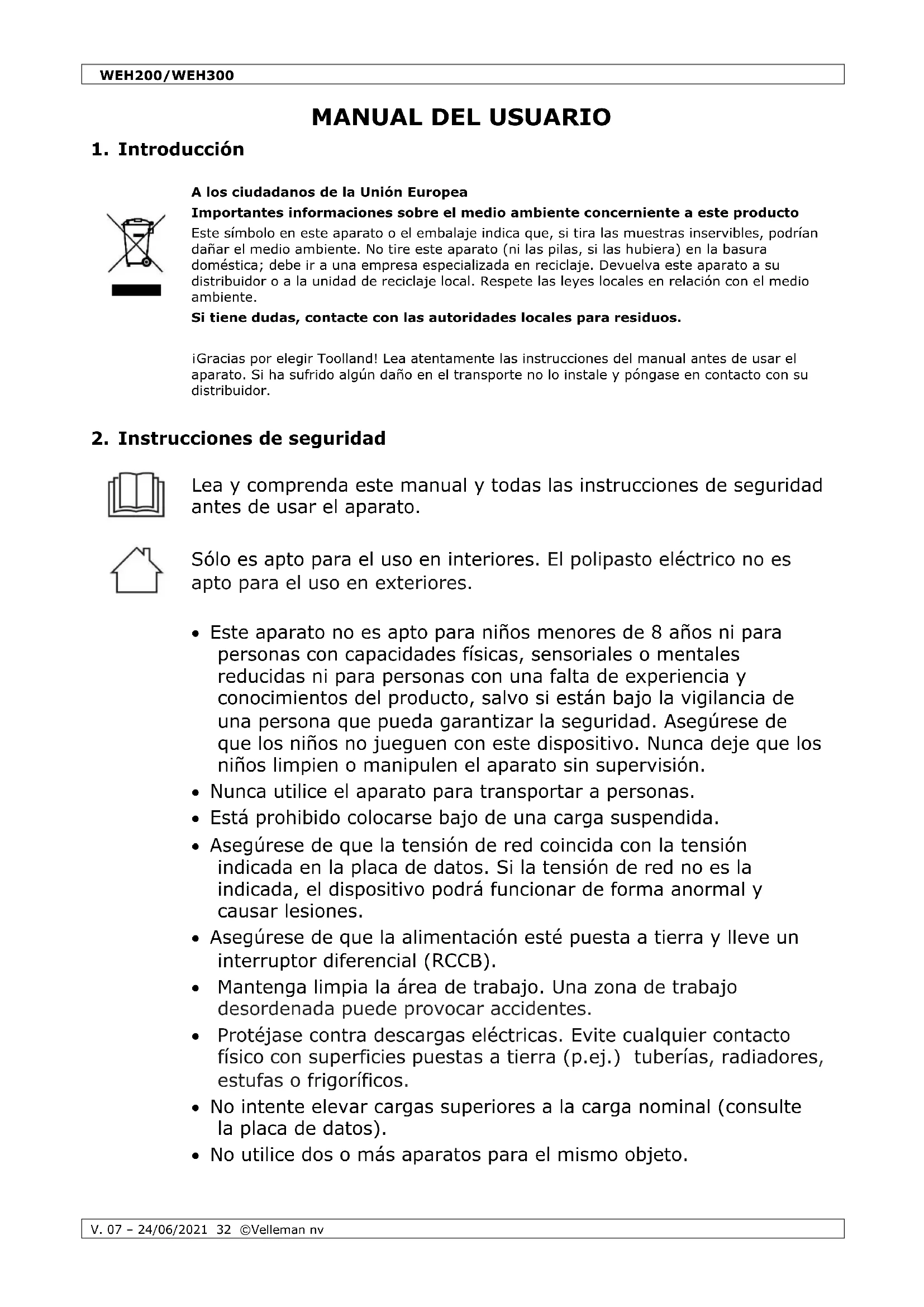WEH200 - Cabrestante eléctrico Toolland - Manual de uso y guía de instrucciones gratis