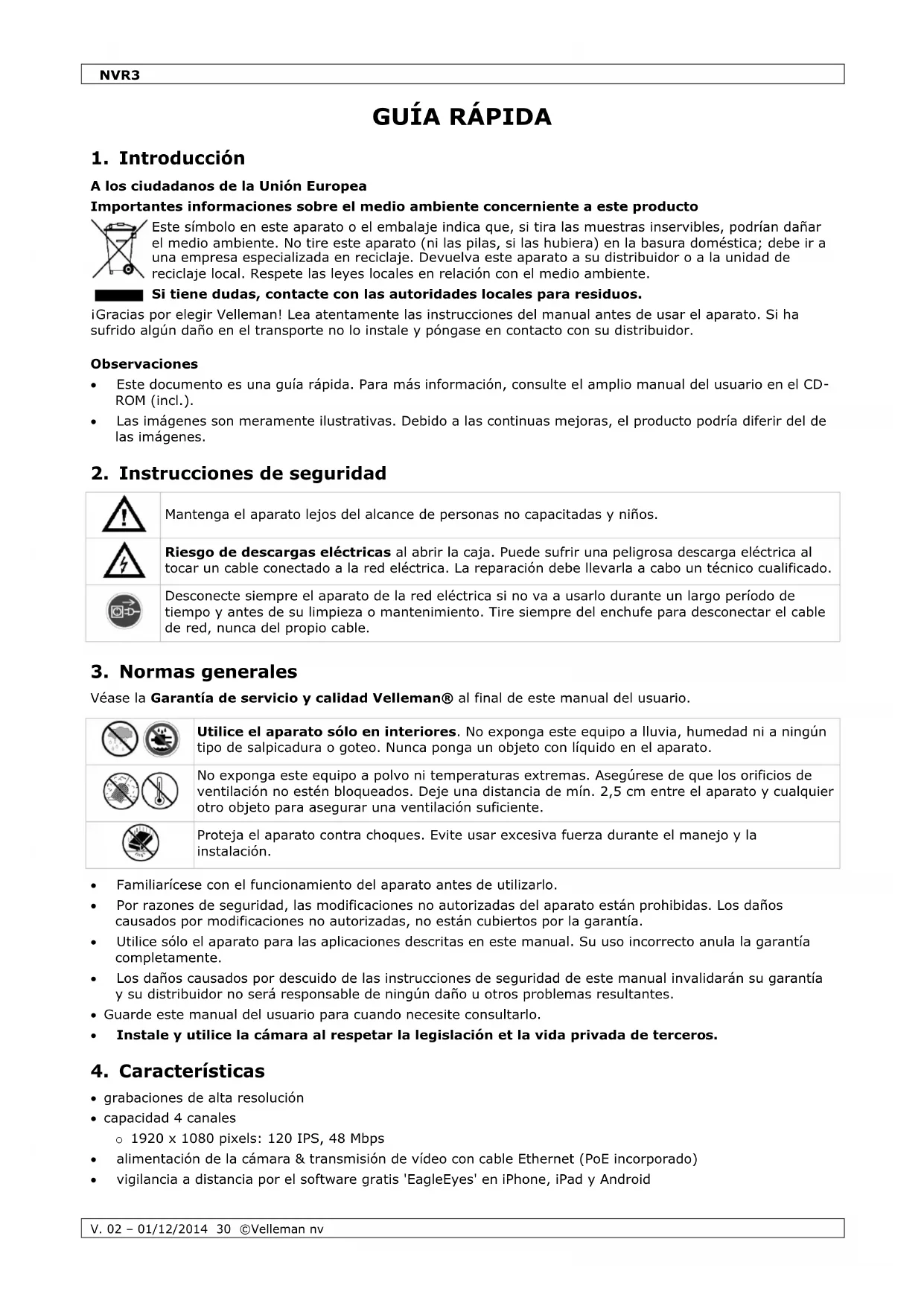 Encuentra gratis el manual del aparato NVR3 VELLEMAN en formato PDF.