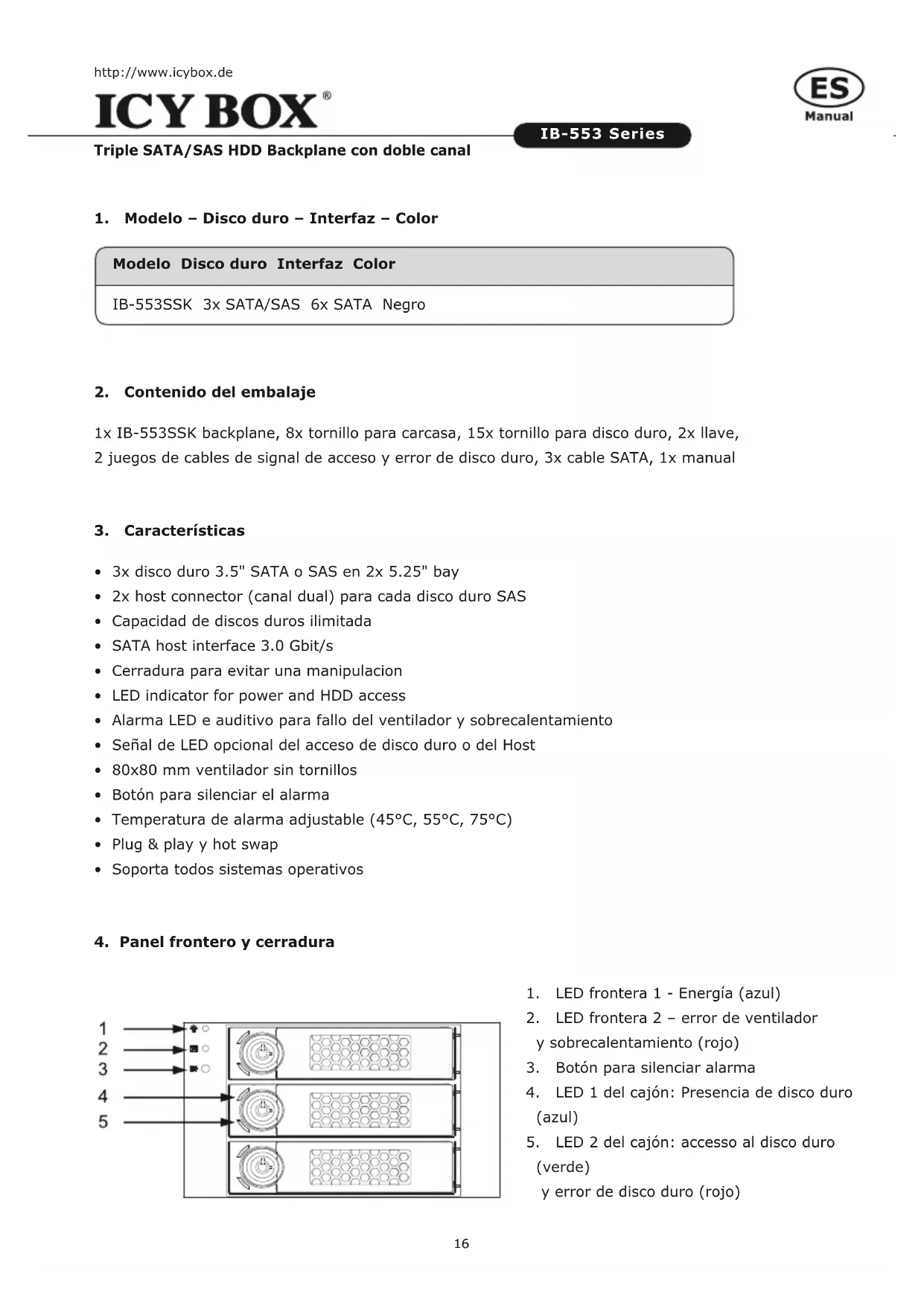 Encuentra gratis el manual del aparato IB553SSK Icy Box en formato PDF.