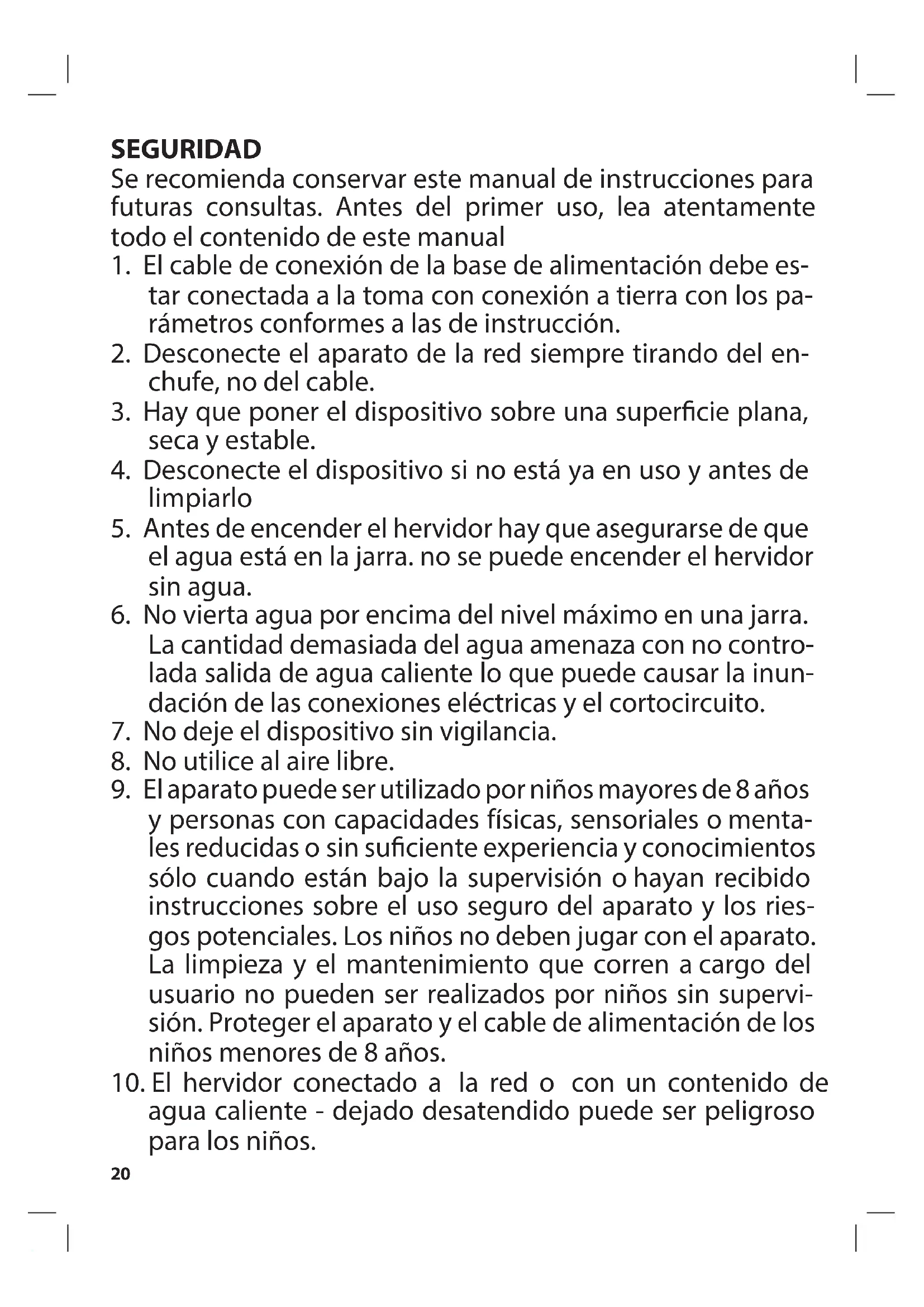 - Sólo se puede limpiar el dispositivo que está frío y desconectado. - Durante el lavado no se puede sumergir la jarra en agua. - Se puede limpiar los supercies exteriores con un paño húmedo y un líquido para lavar platos. - Los sedimentos del agua en las supercies internas se deberá retirar con un paño empapado en vinagre, luego enjuague la jarra con agua limpia. - En el caso de la deposición de sarro en el elemento de calentamiento se debe retirarlo periódicamente de la siguiente manera: - Hervir en la jarra - 0,5 litros de agua. - Apagar el jarro y desconectar la enchufe del contacto. - Verter auna jarra 0,1 l de vinagre y dejar la disolución durante unas pocas horas. - Verter la disolución, enjuagar el hervidor con agua limpia. - Hervir en el hervidor 1 litro de agua. - Verter el agua hirviendo y enjuagar el interior de la jarra con agua limpia. - El fracaso el quitar el sarro de la calefacción provoca una consumición acelerada del elemento de calefacción en el hervidor. - Los daños causados por la utilización de los productos de despedregado demasiado duros no están cubiertos por la garantía del fabricante del hervidor. FILTRO El ltro montado en la jarra se compone de tela que retiene las partículas de sarro. El ltro no elimina el sarro del agua, sólo impide su penetración en el vaso durante el vertido del agua. Hay que limpiar el ltro con regularidad. El agua dura puede obstruir el ltro después de unas pocas veces de utilización. Se puede quitar el ltro y enjuagarlo olimpiarlo con el cepillo suave.24