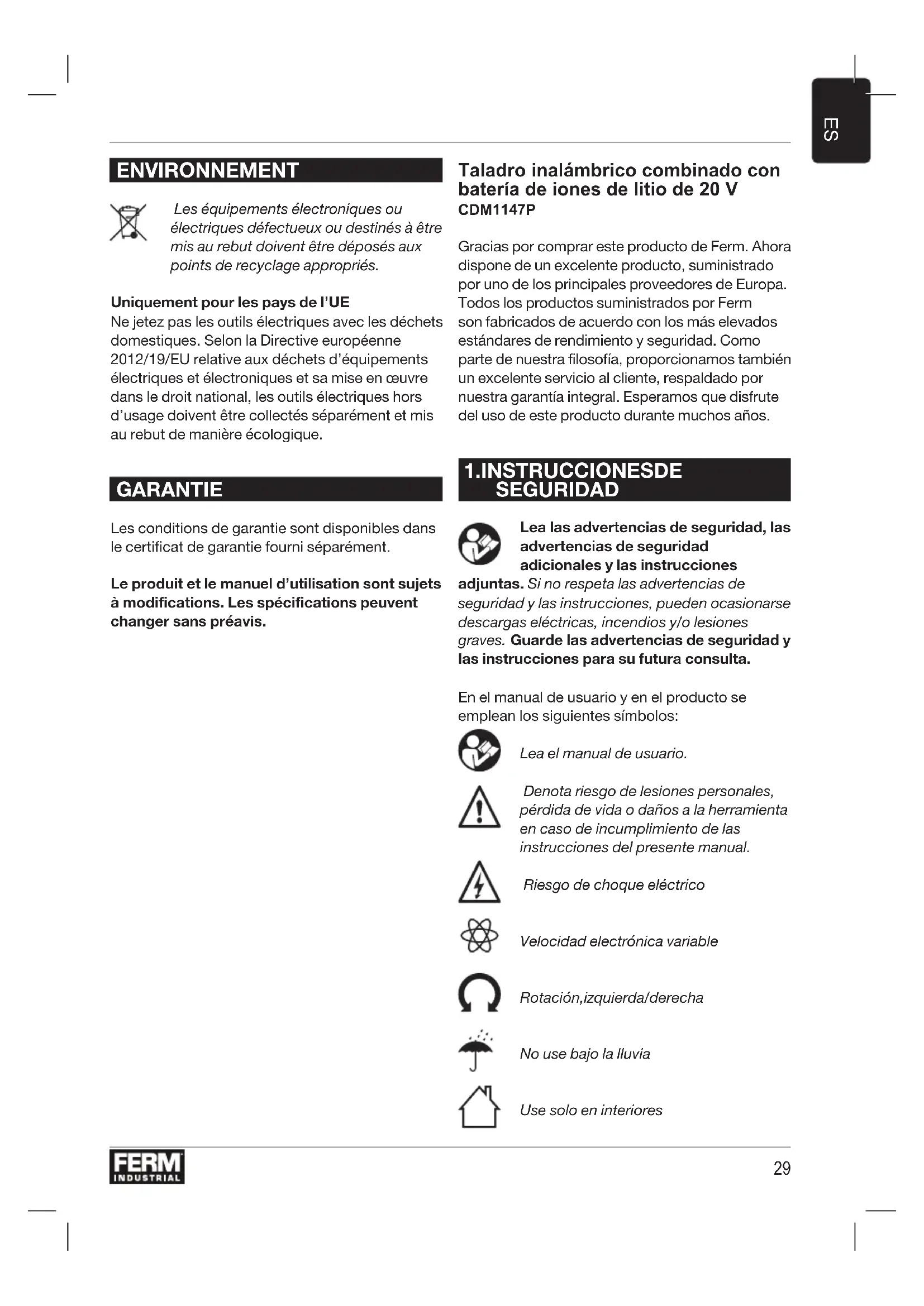 Descarga las instrucciones para tu Perforar en formato PDF gratis! Encuentra tus instrucciones CDM1147P - Ferm y toma tu dispositivo electrónico nuevamente en la mano. En esta página están publicados todos los documentos necesarios para el uso de su dispositivo. CDM1147P de la marca Ferm.