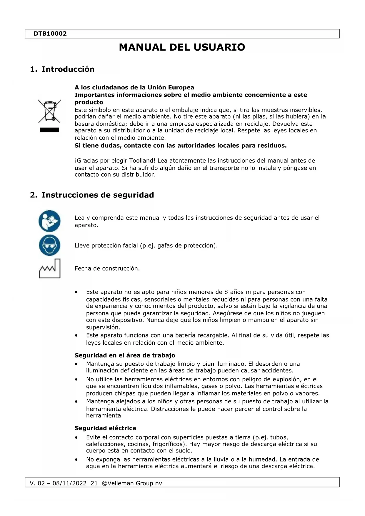 Encuentra gratis el manual del aparato DTB10002 Toolland en formato PDF.