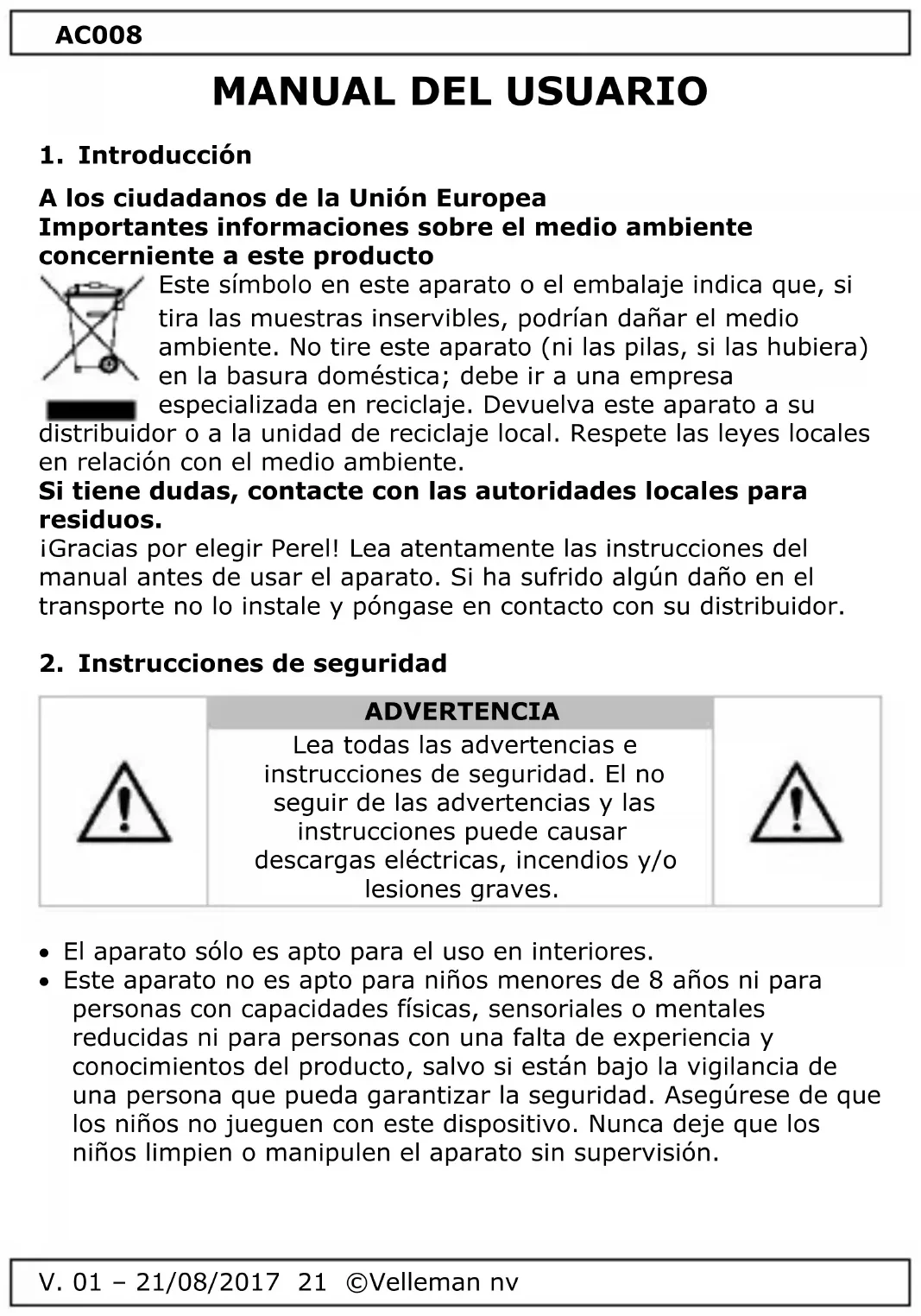 MANUAL DE USUARIO AC008 Perel