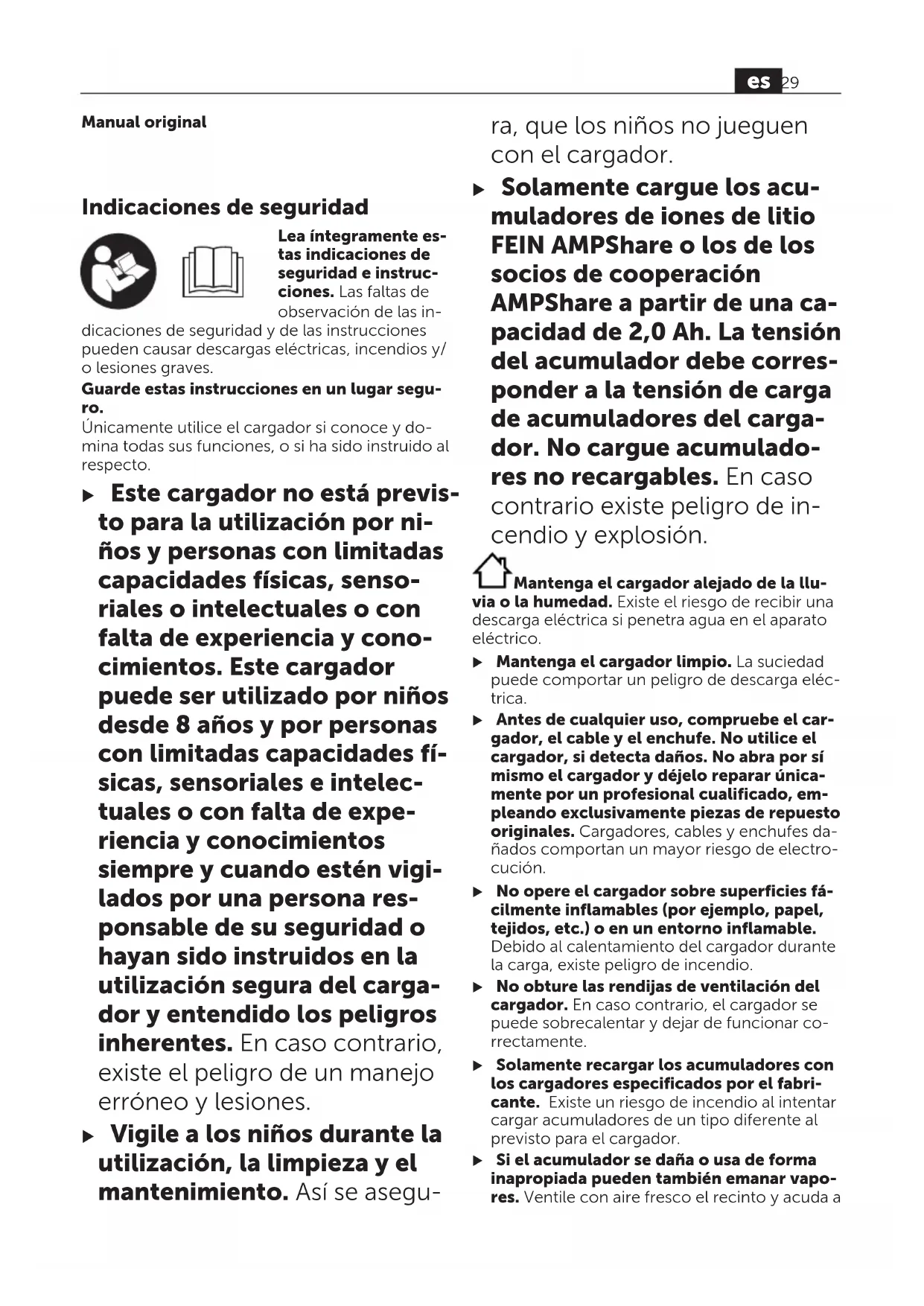 Sustituir el acumulador Cargador averiado Si fuese preciso, acuda a un servicio técnico autorizado para herra- mientas eléctricas FEIN para hacer revisar el cargador Indicador verde del estado de carga del acu- mulador (3) no se enciende El enchufe de red del cargador no está (co- rrectamente) conecta-