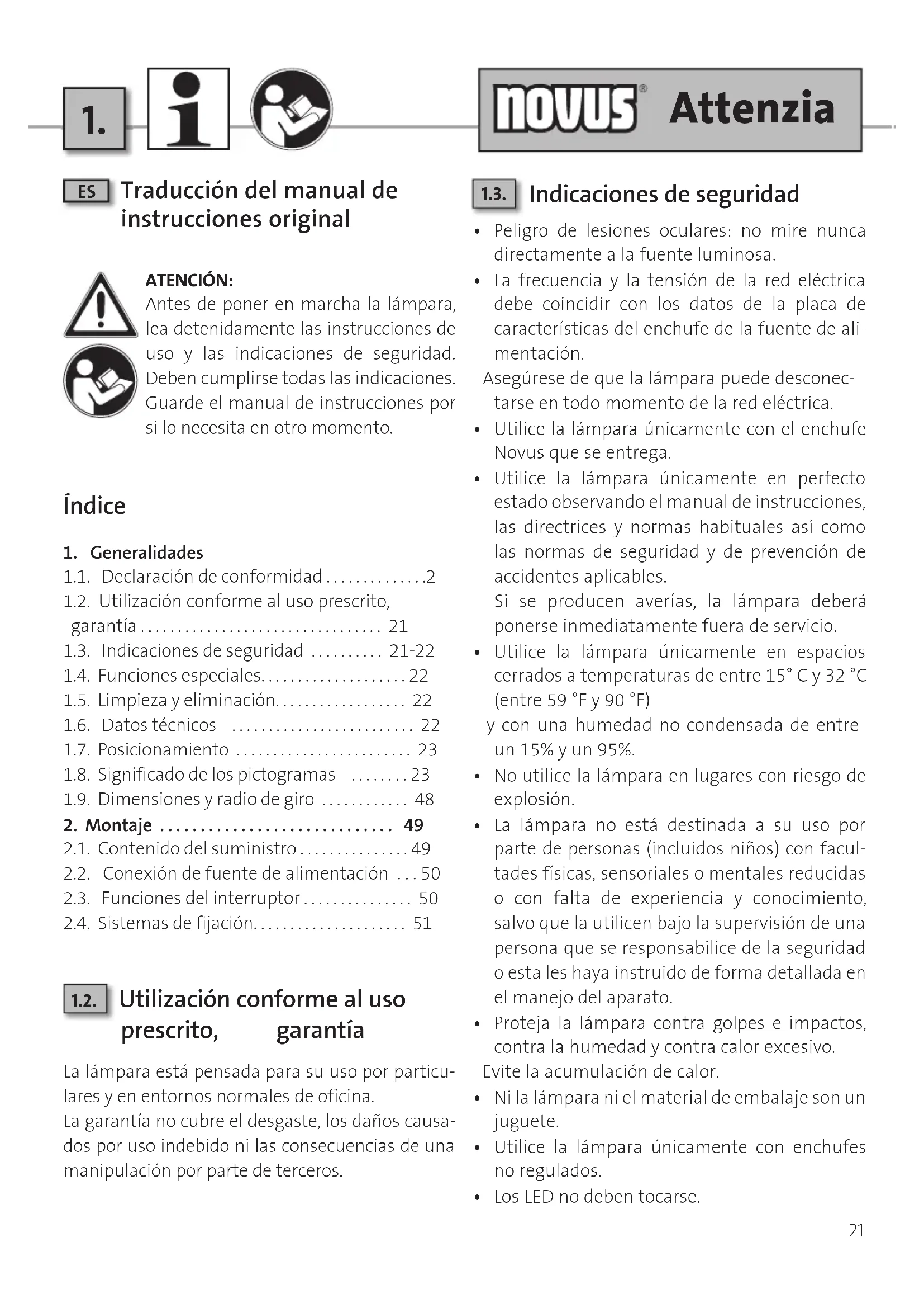 Traducción del manual de instrucciones original ATENCIÓN: Antes de poner en marcha la lámpara, lea detenidamente las instrucciones de uso y las indicaciones de seguridad. Deben cumplirse todas las indicaciones. Guarde el manual de instrucciones por si lo necesita en otro momento. Índice