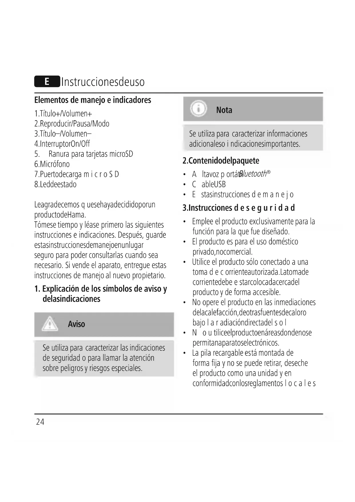 Le agradecemosque se haya decidido porun producto de Hama. Tómese tiempoyléase primero las siguientes instrucciones eindicaciones. Después,guarde estas instrucciones de manejo en un lugar seguroparapoder consultarlas cuando sea necesario.Sivendeelaparato, entregue estas instrucciones de manejo al nuevopropietario.