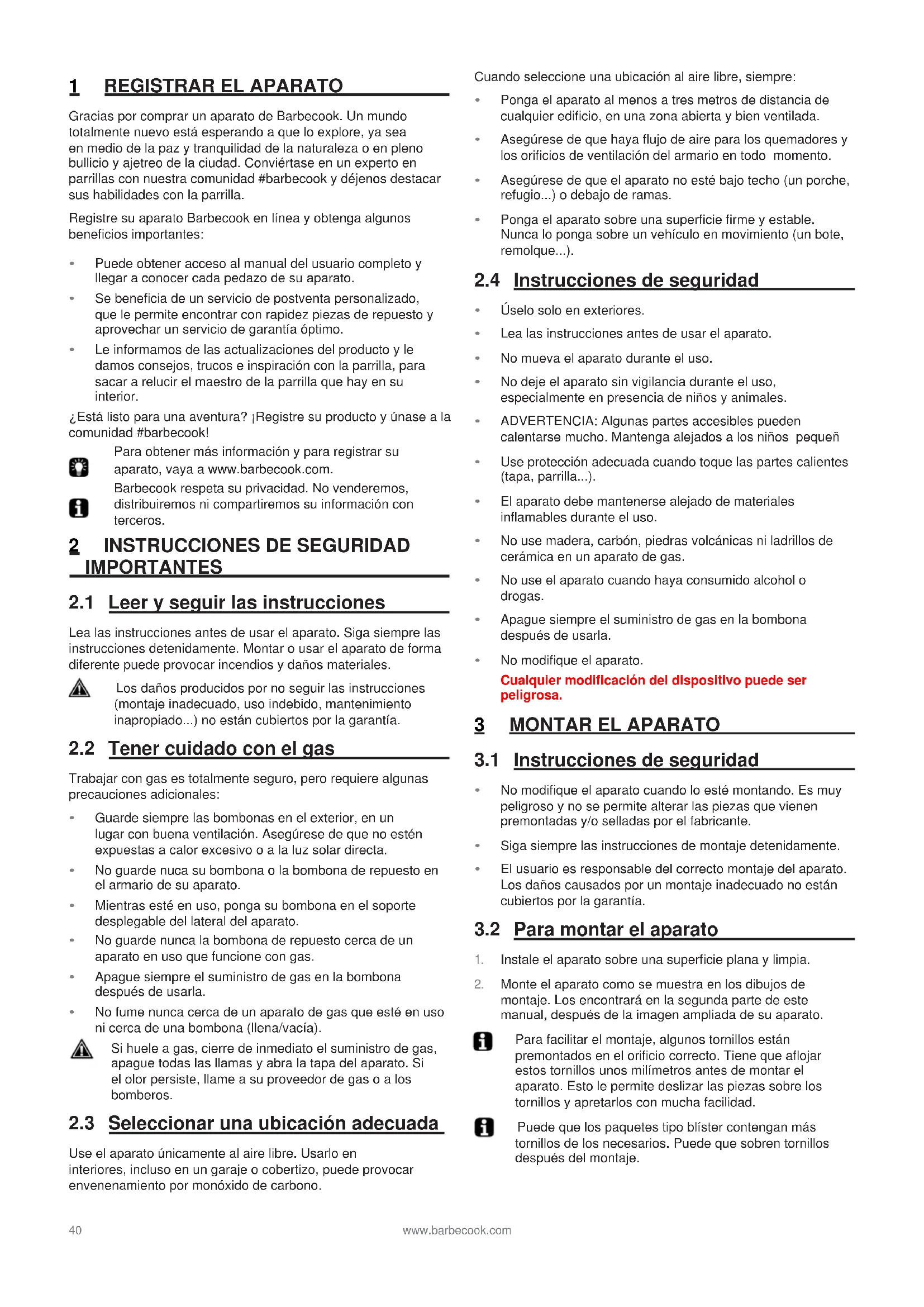 Gracias por comprar un aparato de Barbecook. Un mundo totalmente nuevo está esperando a que lo explore, ya sea en medio de la paz y tranquilidad de la naturaleza o en pleno bullicio y ajetreo de la ciudad. Conviértase en un experto en parrillas con nuestra comunidad #barbecook y déjenos destacar sus habilidades con la parrilla. Registre su aparato Barbecook en línea y obtenga algunos beneficios importantes: