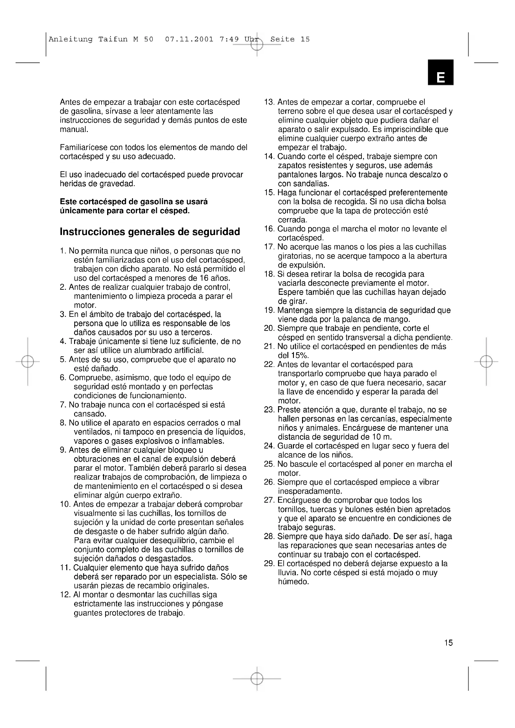 lluvia. No corte césped si está mojado o muy húmedo. Anleitung Taifun M 50 07.11.2001 7:49 Uhr Seite 1516