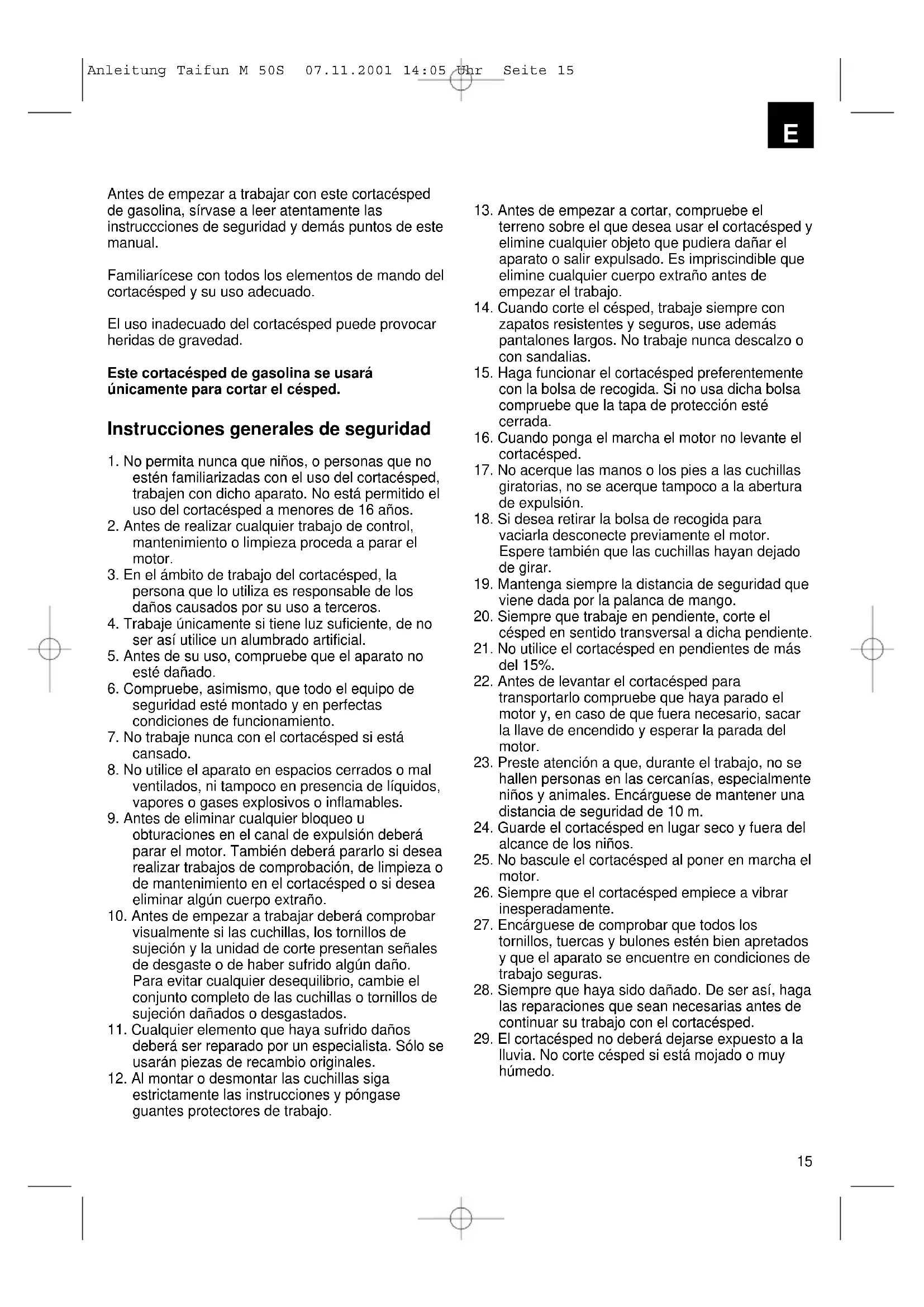 lluvia. No corte césped si está mojado o muy húmedo. Anleitung Taifun M 50S 07.11.2001 14:05 Uhr Seite 1516