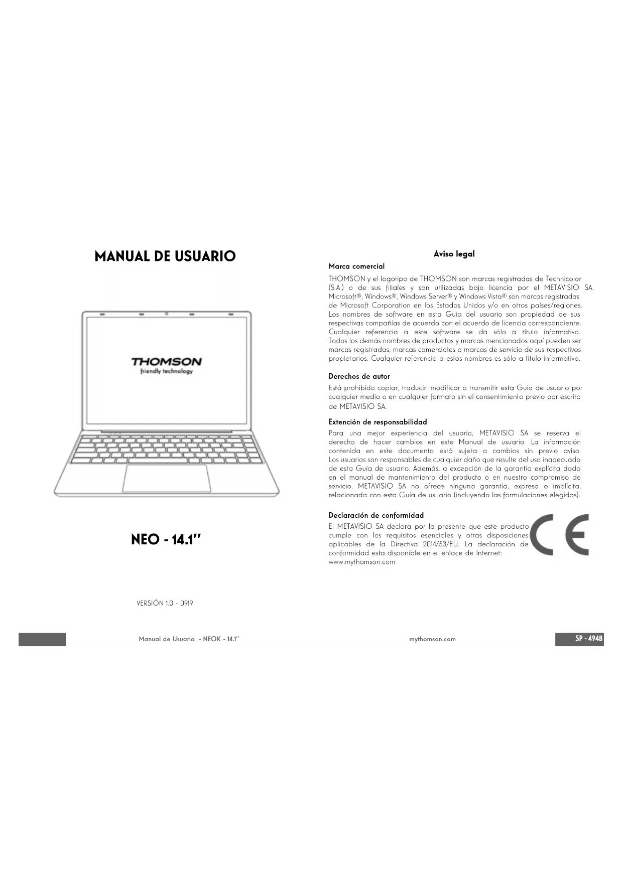 Descarga las instrucciones para tu Computadora portátil en formato PDF gratis! Encuentra tus instrucciones NEO 3K - THOMSON y toma tu dispositivo electrónico nuevamente en la mano. En esta página están publicados todos los documentos necesarios para el uso de su dispositivo. NEO 3K de la marca THOMSON.