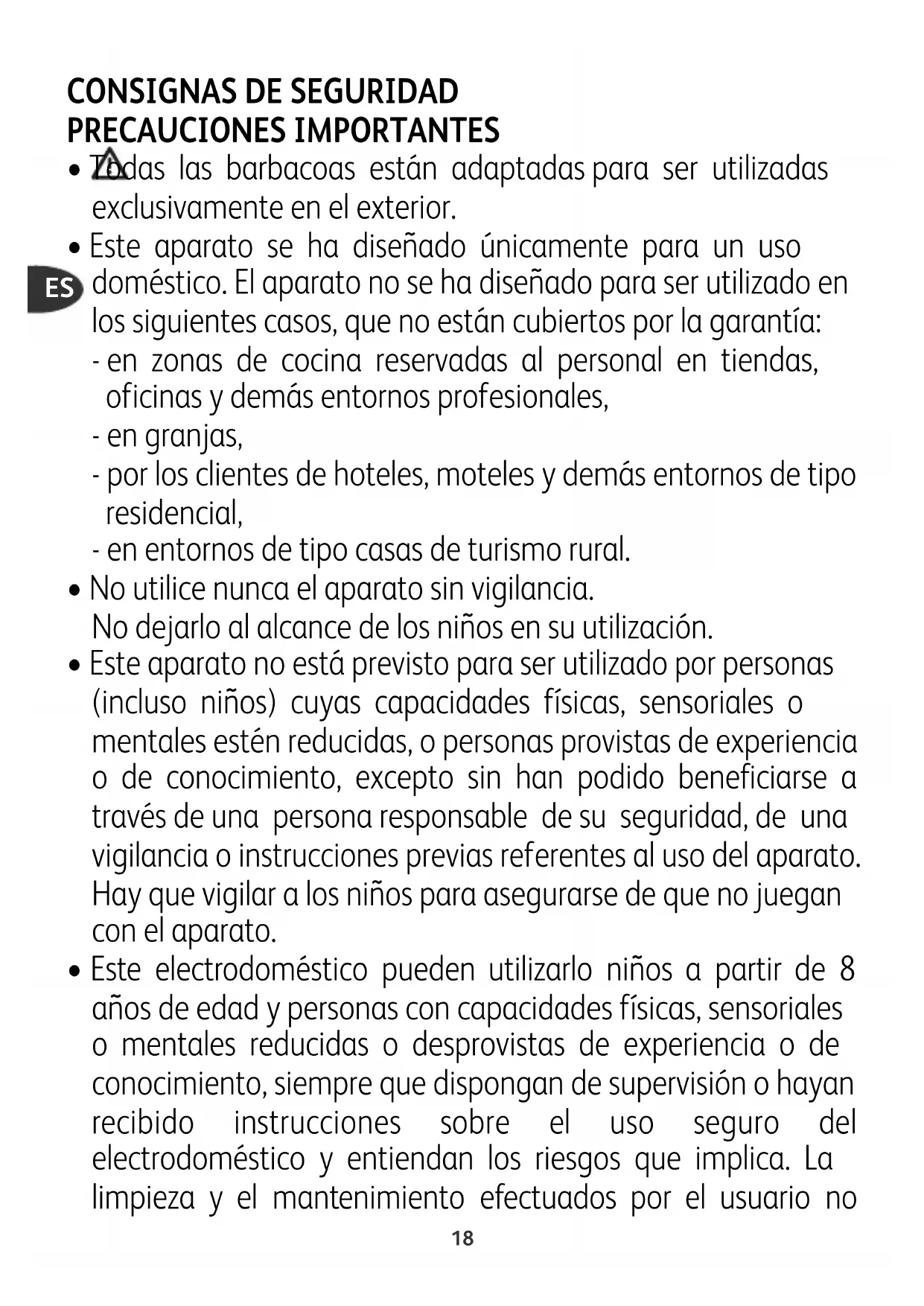 BBQnew-2100080904 29/10/13 15:58 Page1819 deben ser realizados por niños sin vigilancia. Mantenga el electrodoméstico y su cable de alimentación fuera del alcance de los niños menores de 8 años.