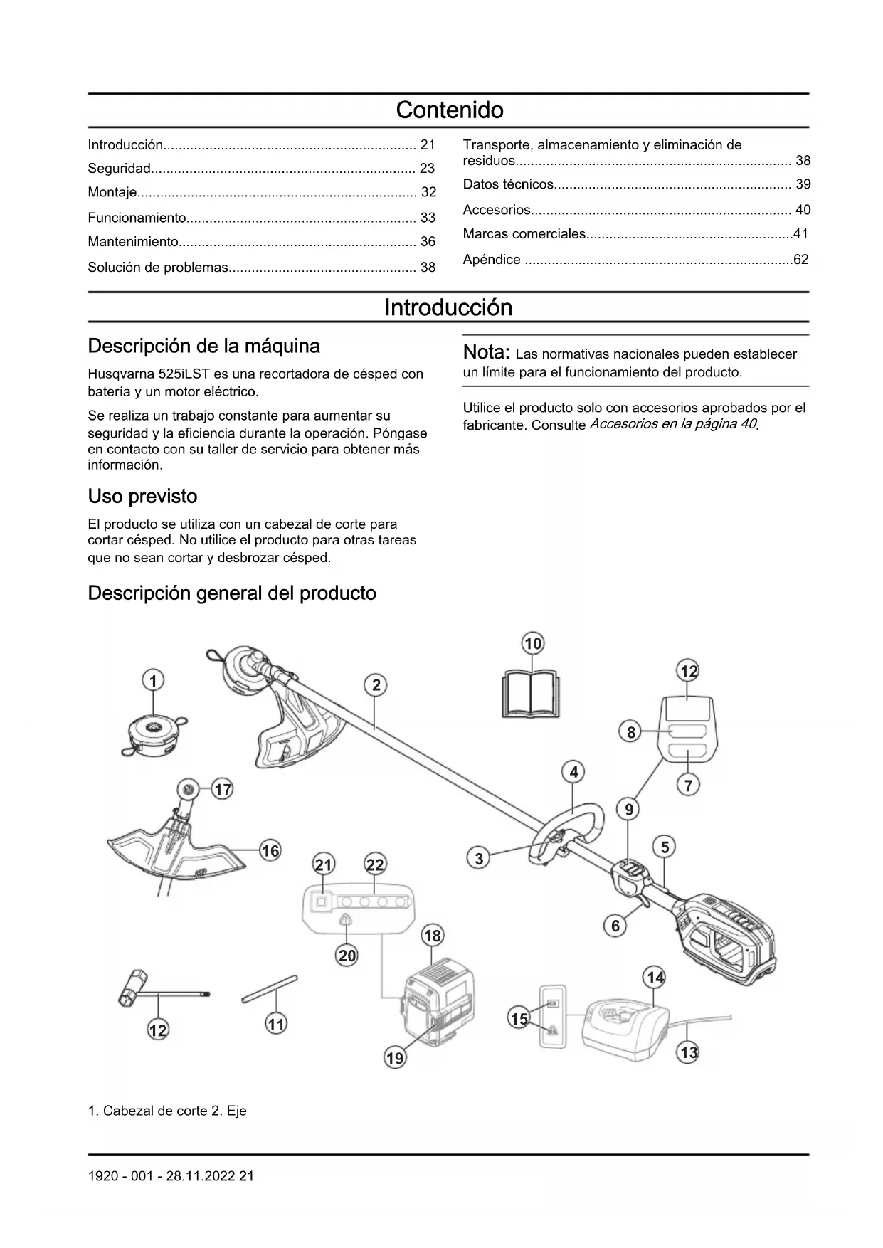 - word mark and logos are registered trademarks owned by Bluetooth SIG, inc. and any use of such marks by Husqvarna is under license. 20 1920 - 001 - 28.11.2022Contenido Introducción p. 21